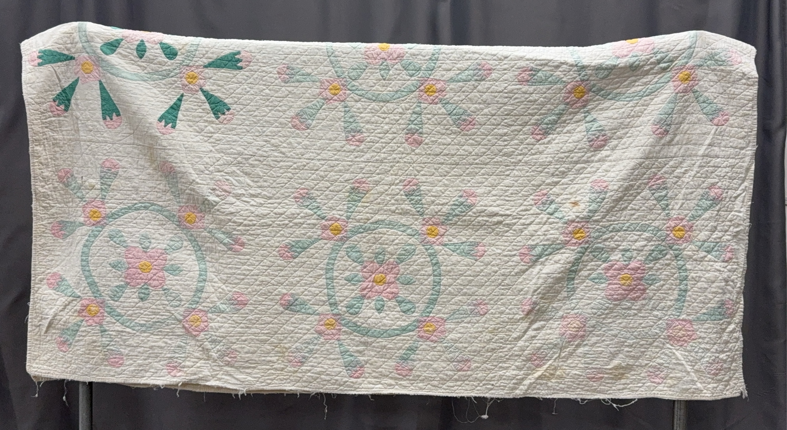Handmade Floral Motif Quilt - some wear, needs repair - 73" x 72"
