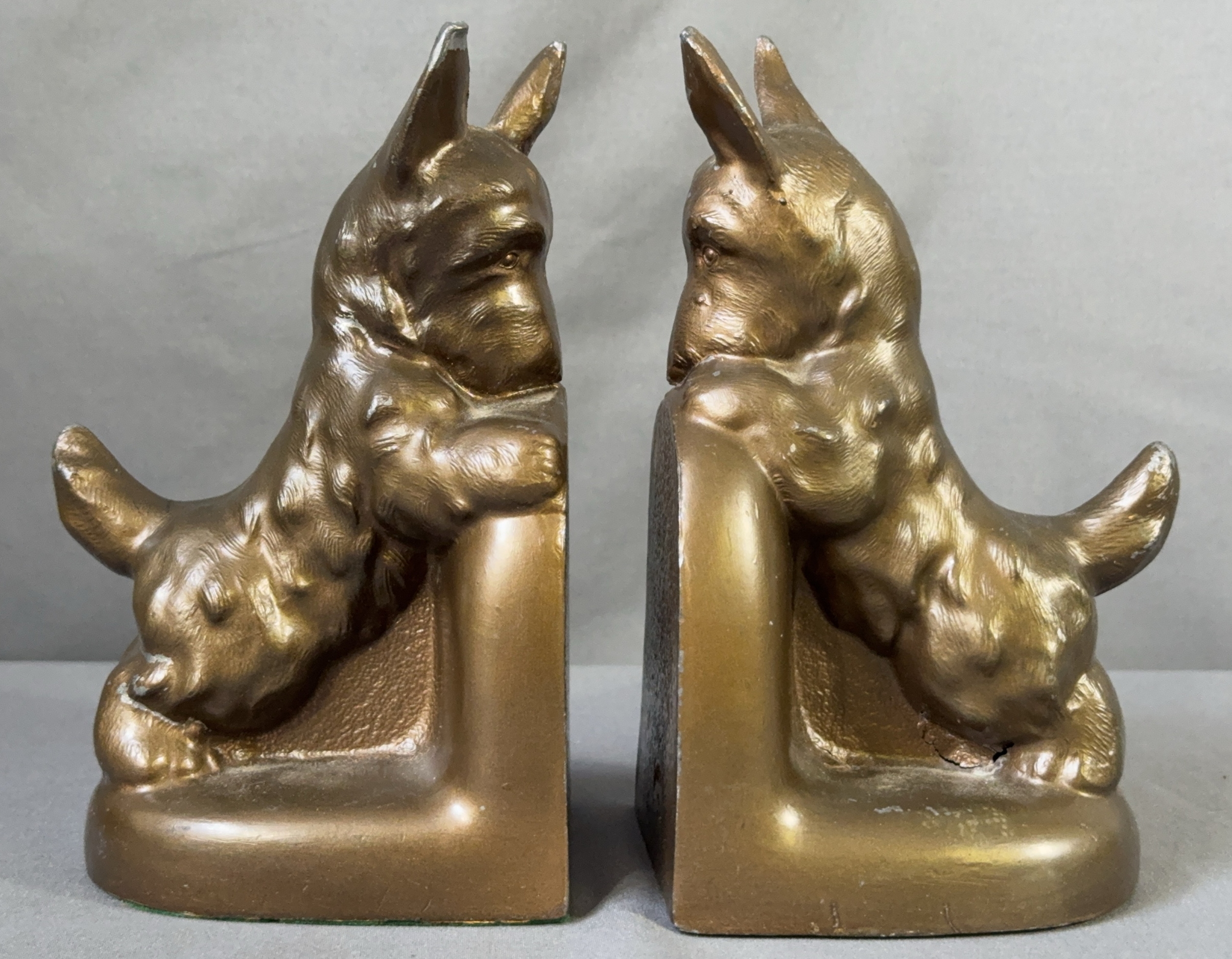 Pair Cast Metal Scottish Terrier Bookends - 4" x 6.5" of each - some finish wear