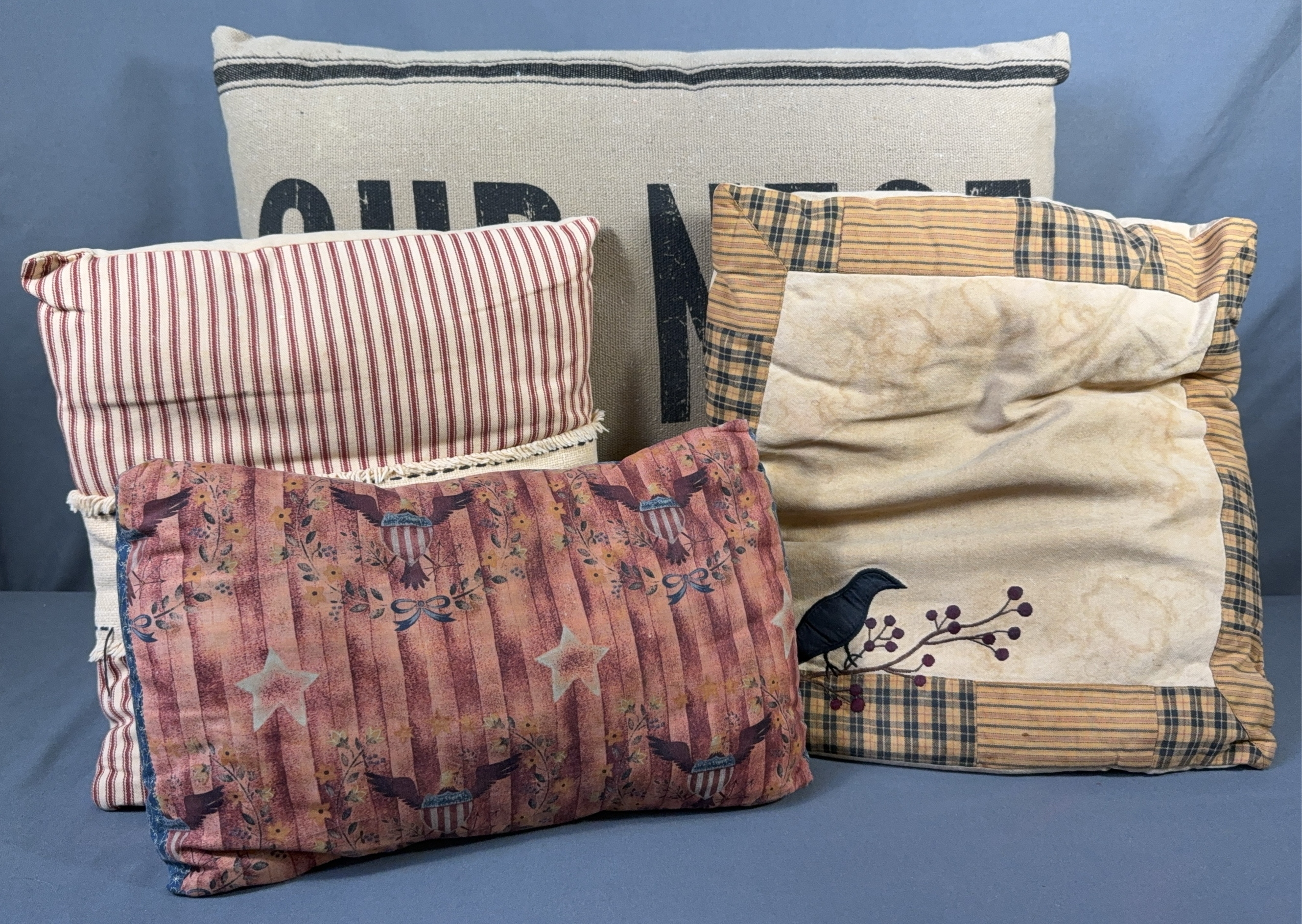 4 Primitive Style Throw Pillows - 23" x 14" of largest