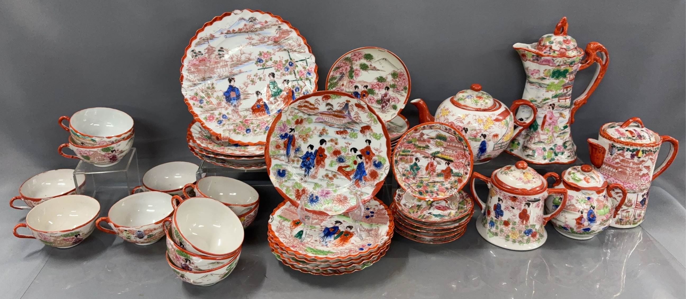 Japanese Kutani Ware Dishes - Coffee/Tea Pots, Sugars, Teacups, Saucers/Plates - 8.5" D of largest - some chipping
