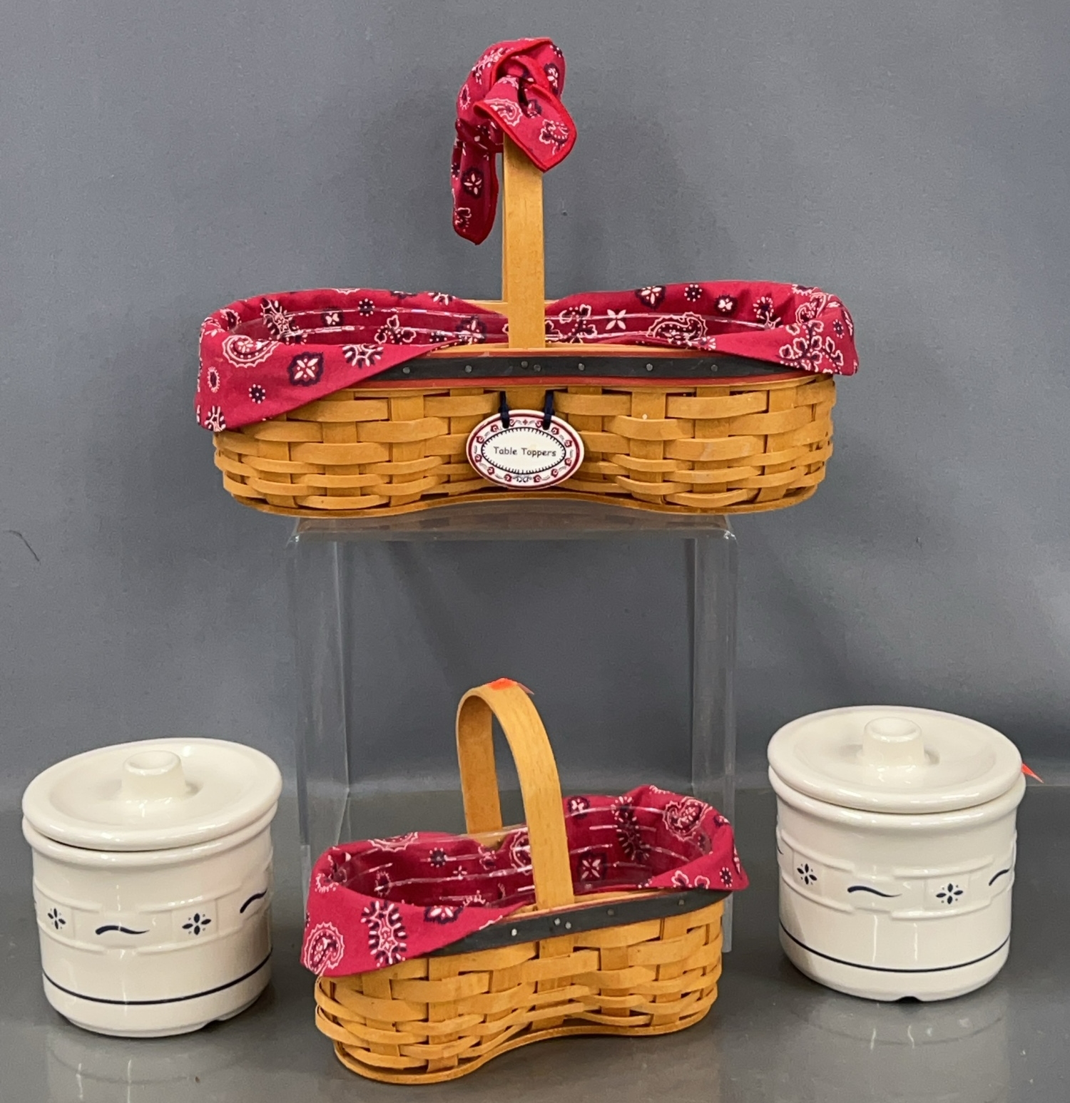2000 Longaberger Picnic Pals Table Topper Baskets w/ Crocks - 12" x 7.5" of largest