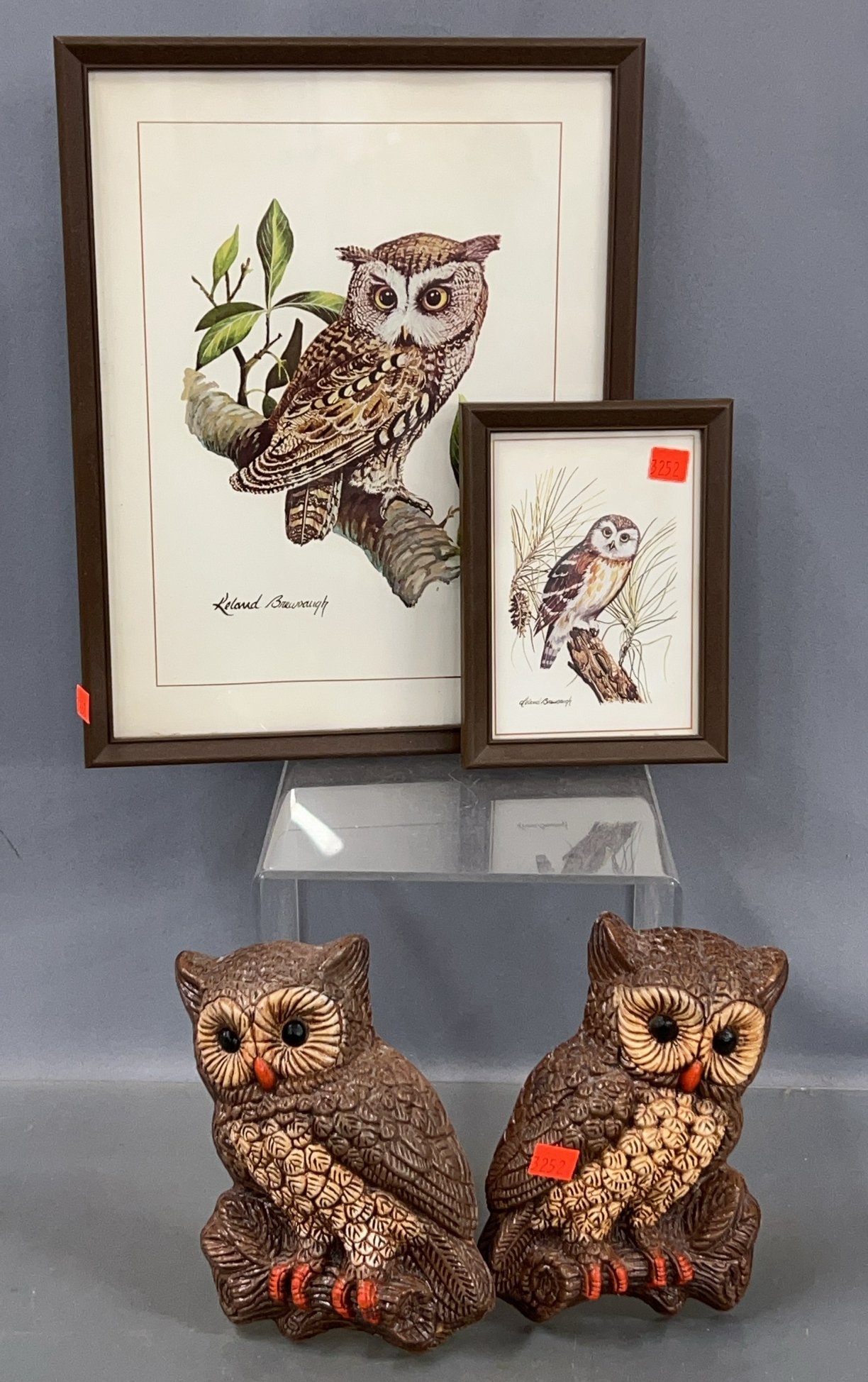 Assorted Owl Motif Decor - Figurines, Framed Prints, Wall Hangings - 12" x 14.5" of largest