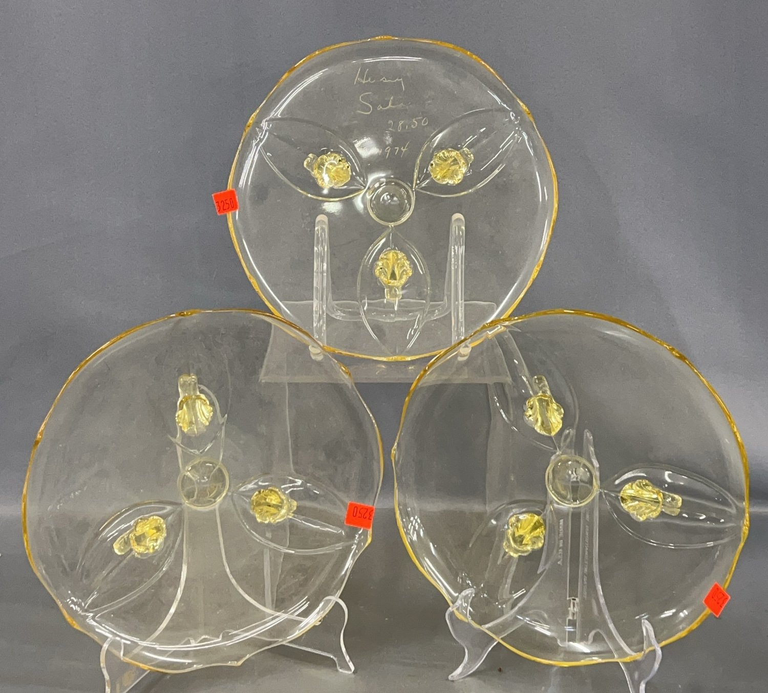 3 Lancaster Petal Topaz Yellow Footed Cake Plate - 10" D of each