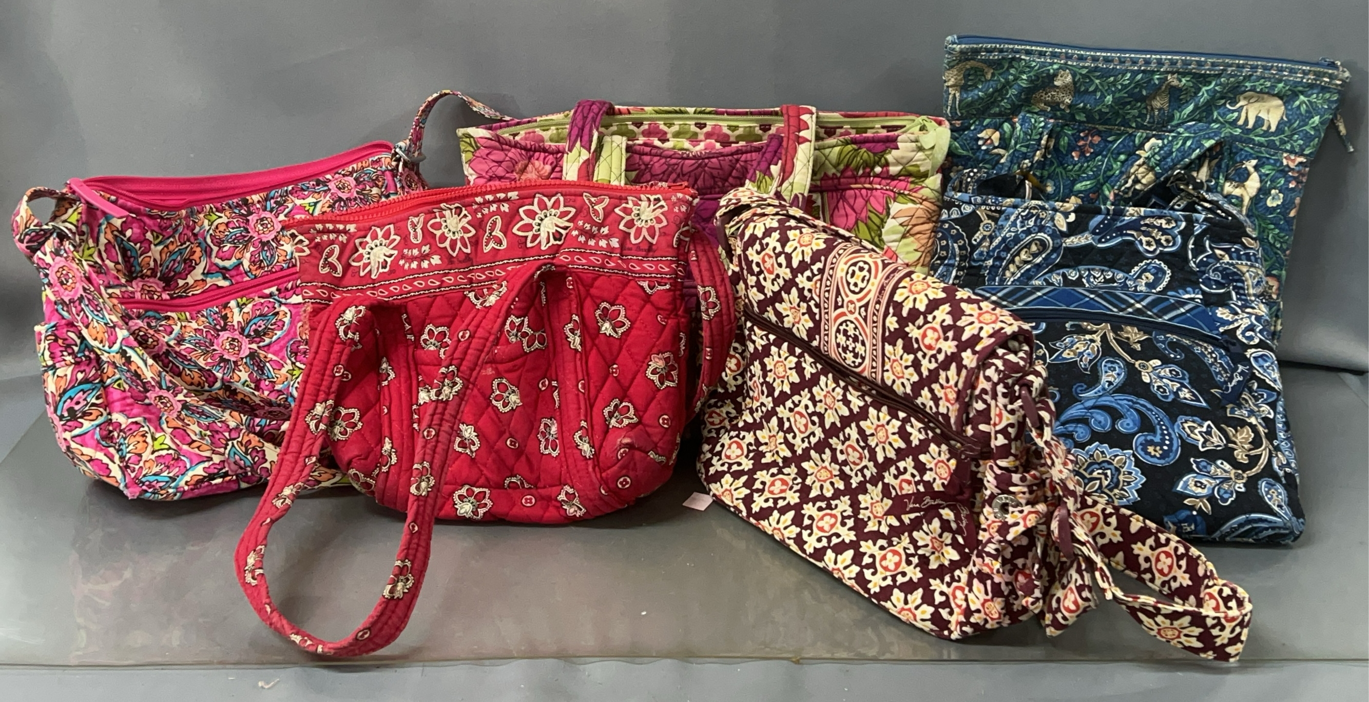 6 Vera Bradley Ladies Handbags - 12" x 9" - some wear/damage