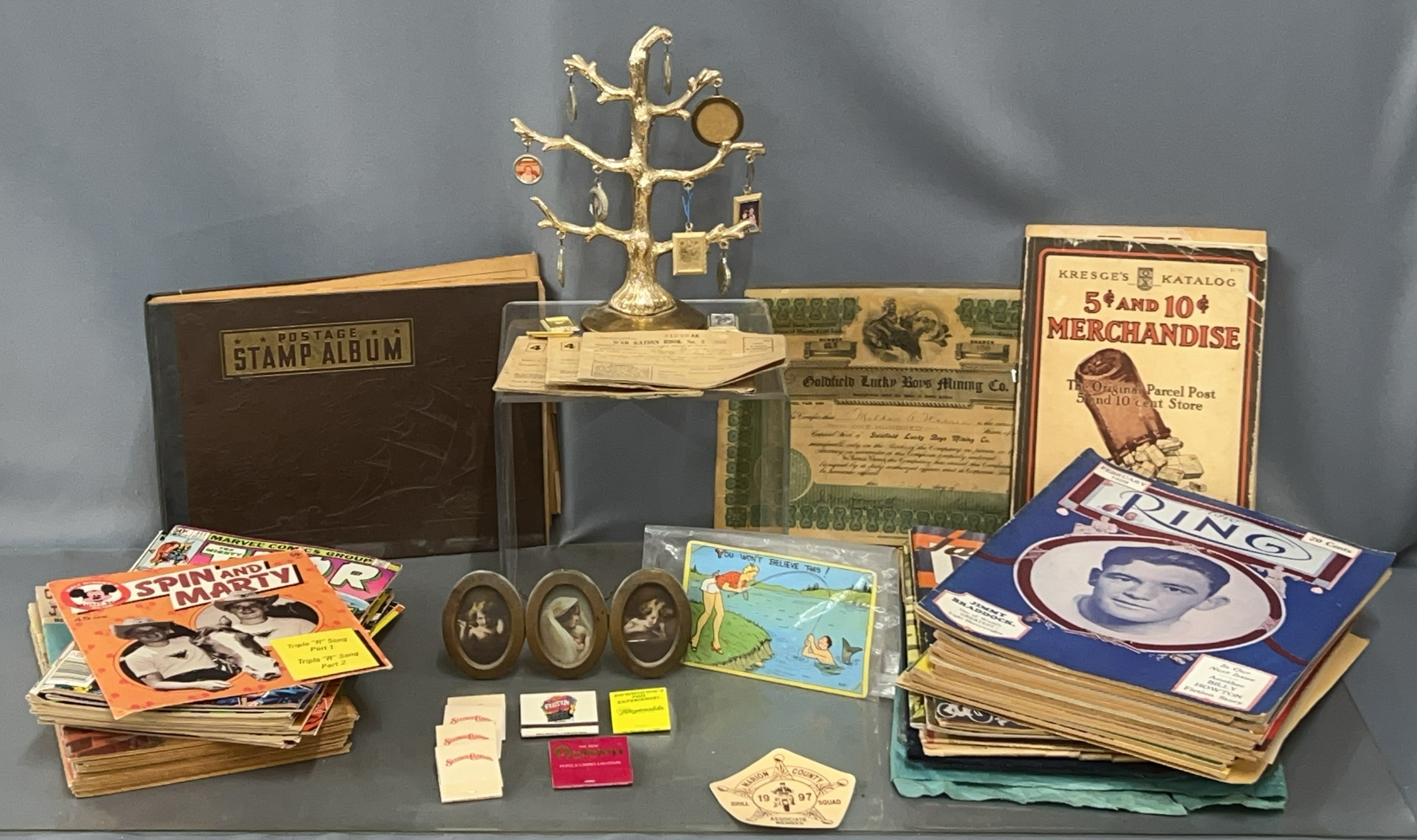 Assorted Paper Ephemera - Comic Books, Postage Stamps, War Ration Books, 1940's Magazines, 1960's Kids Magazines, Misc