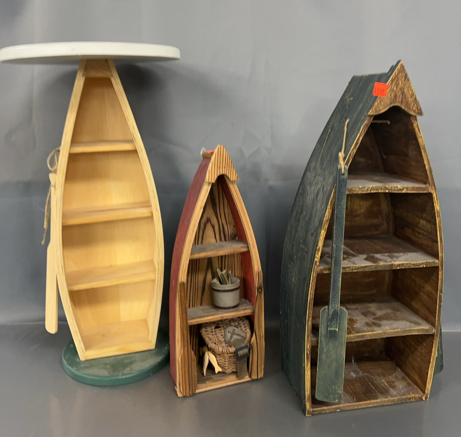 3 Cabin Style Canoe Side Table and 2 Decor Pieces - 23" T of table