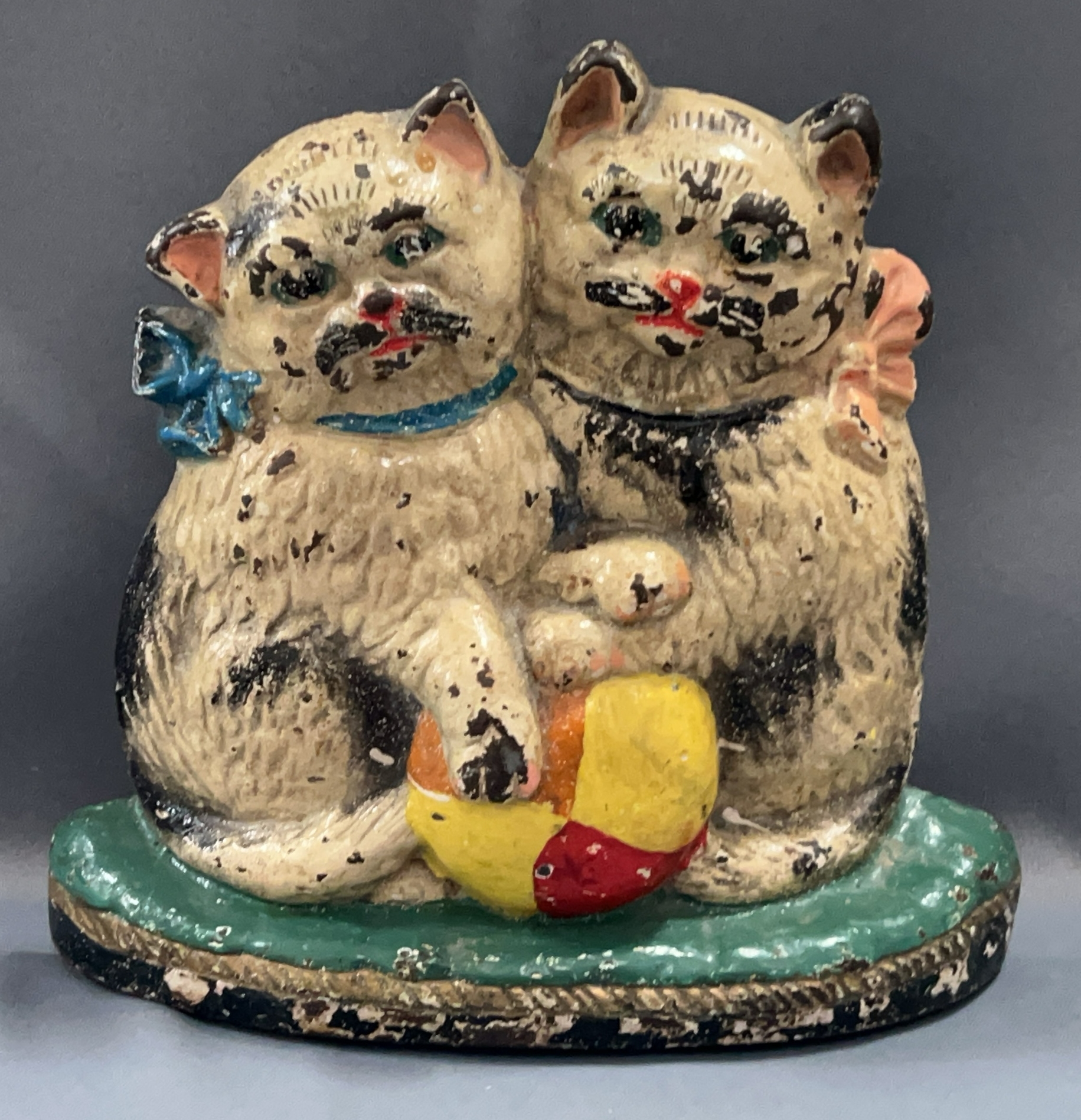 Cast Iron Kittens Doorstop - 8" x 7.5" - some finish wear