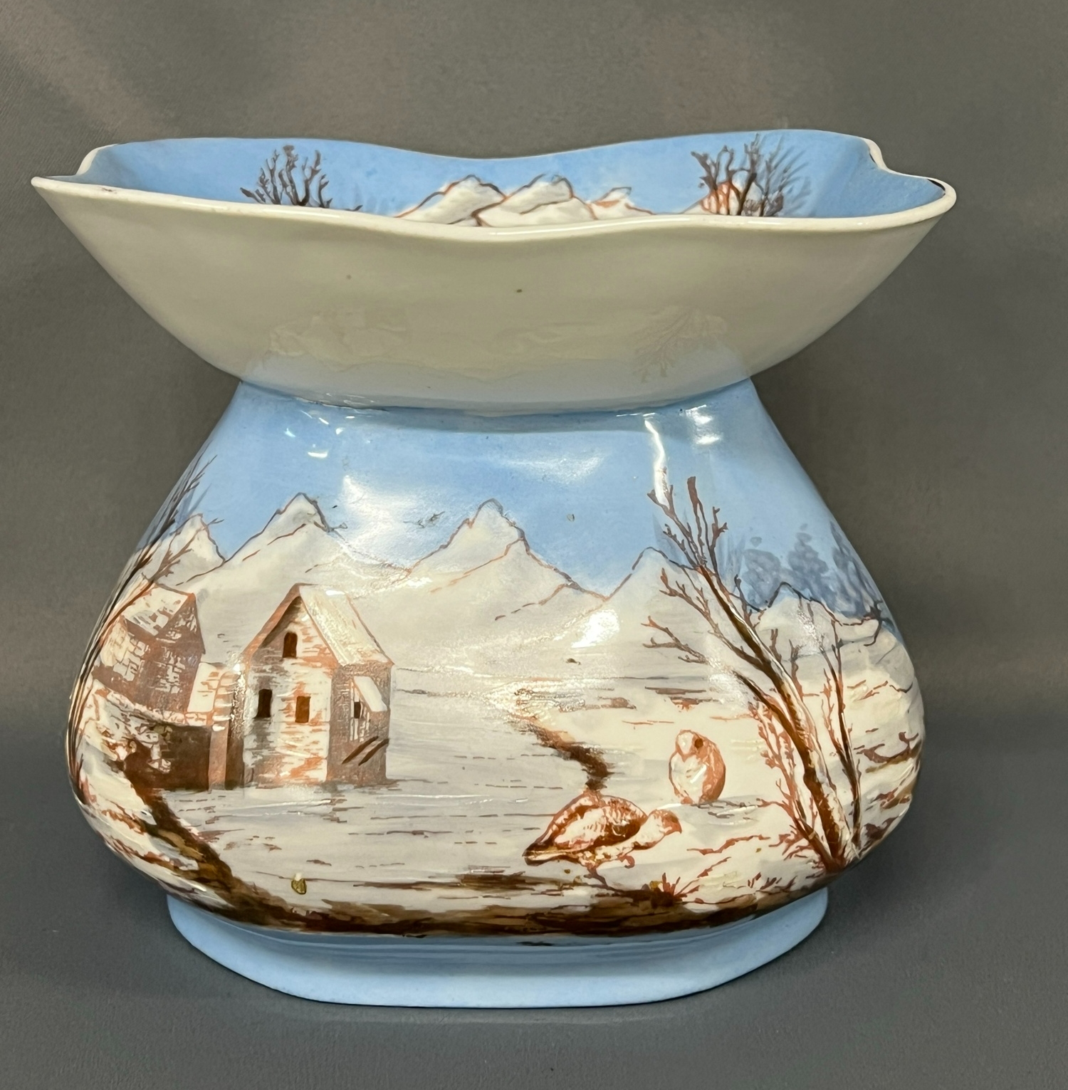 Bawo & Dotter Czech Hand Painted Porcelain Scenic Cuspidor Pot - 7" x 7" x 6"