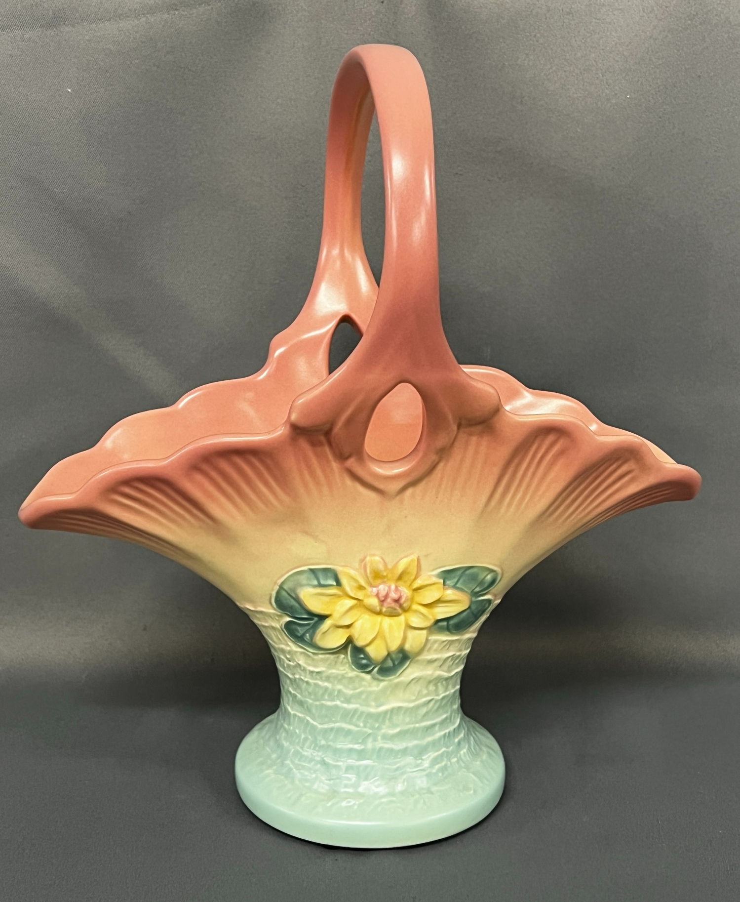 Hull Pottery Water Lily Handled Basket - 10" x 11"