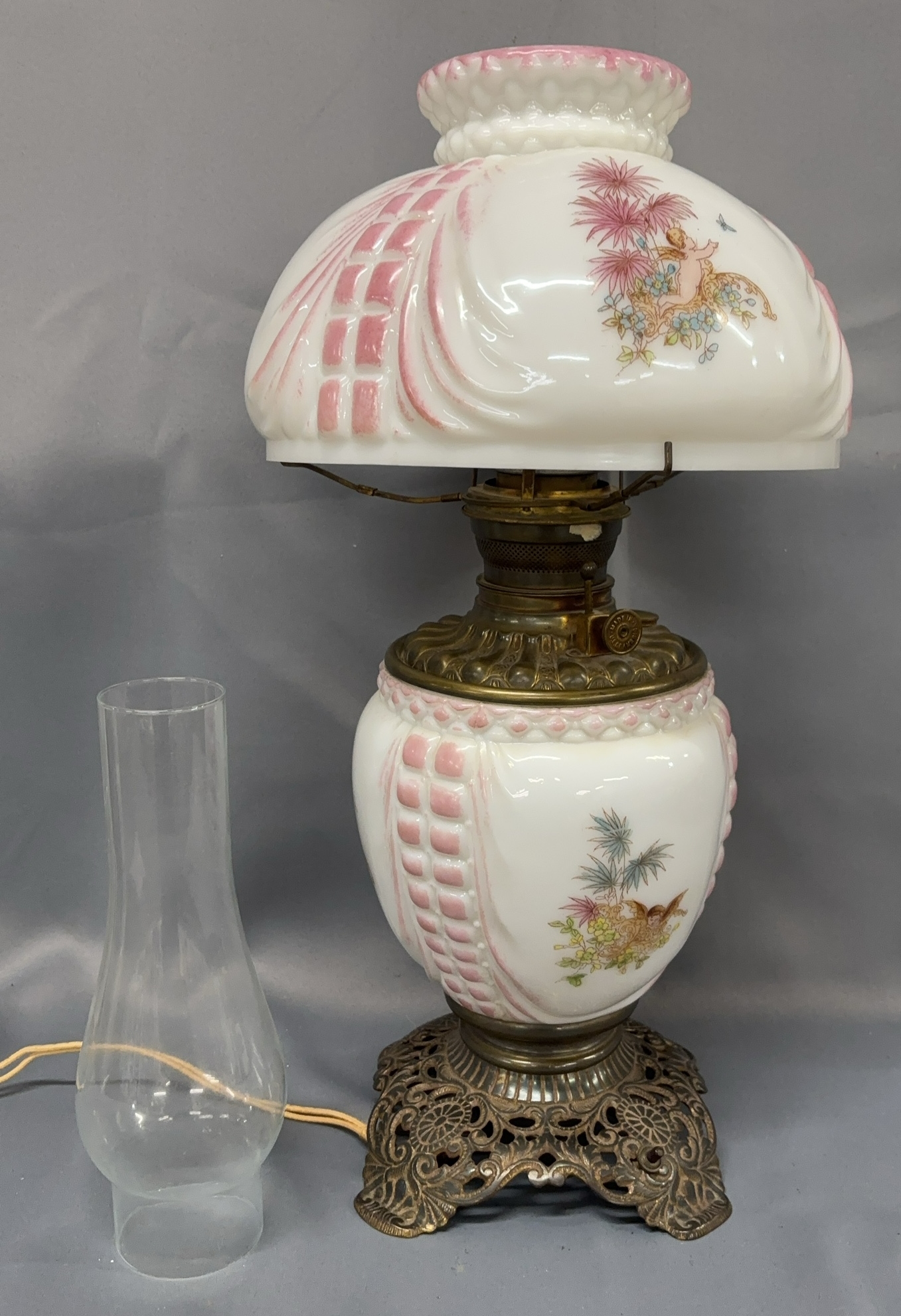 Cherub Motif Printed Glass Parlor Table Lamp - 23" T - some wear to cord