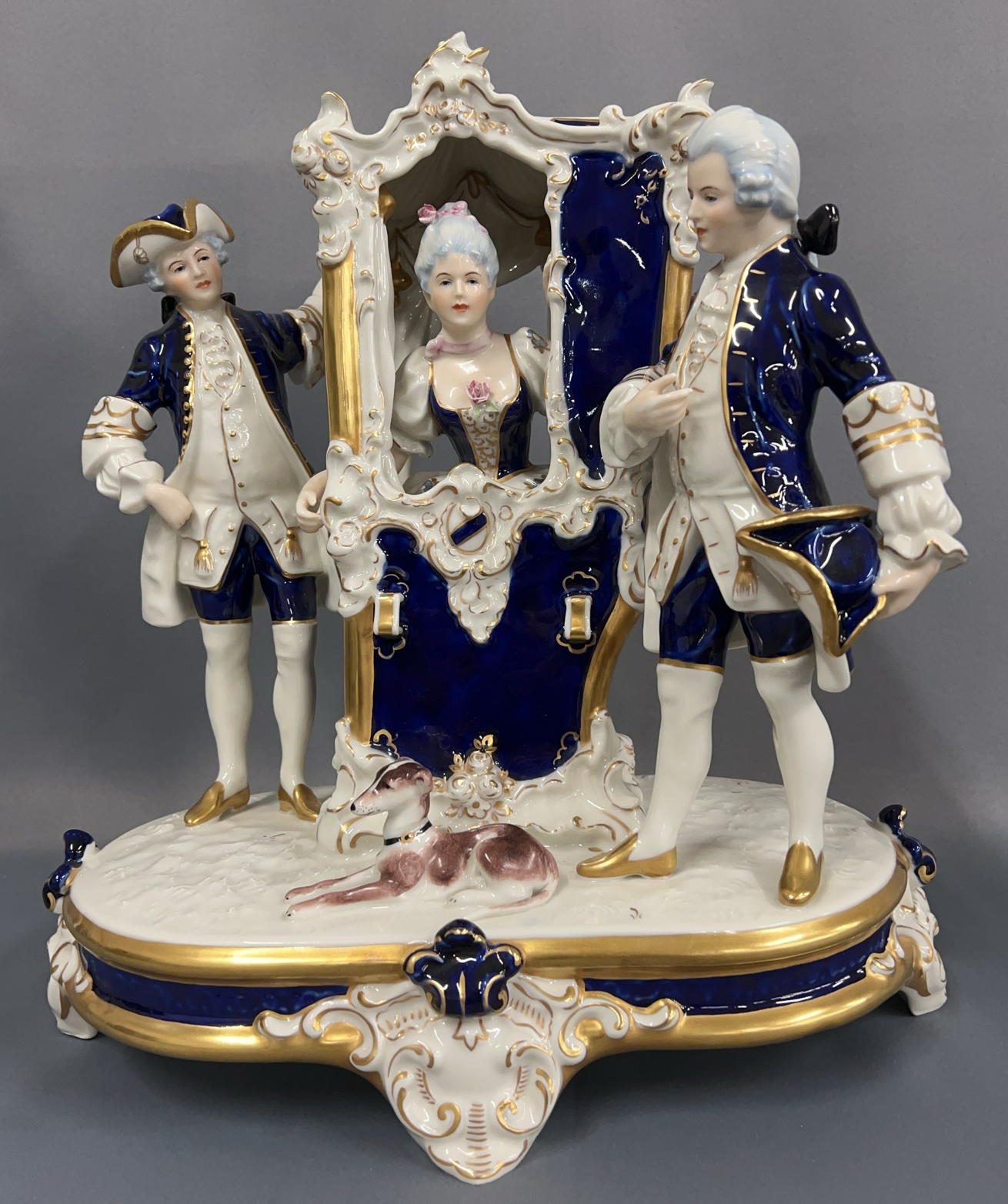 Royal Dux Czech Porcelain Rococo Sedan Chair Centerpiece Figurine - 14" x 8" x 16"