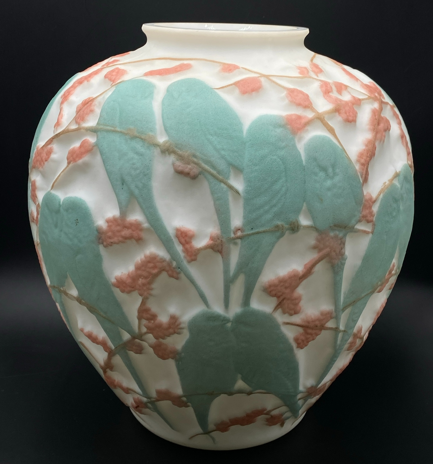 Phoenix Consolidated Love Birds Art Glass Vase - 9" x 10"