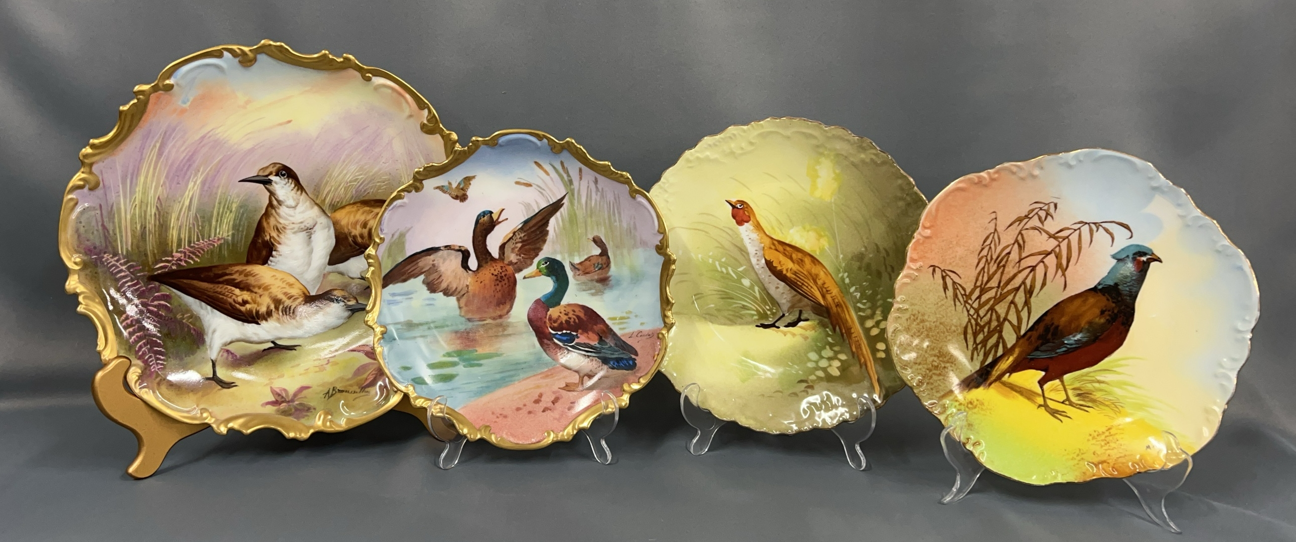 4 Limoges Hand Painted Bird Motif Charger and Plates - 13" of charger