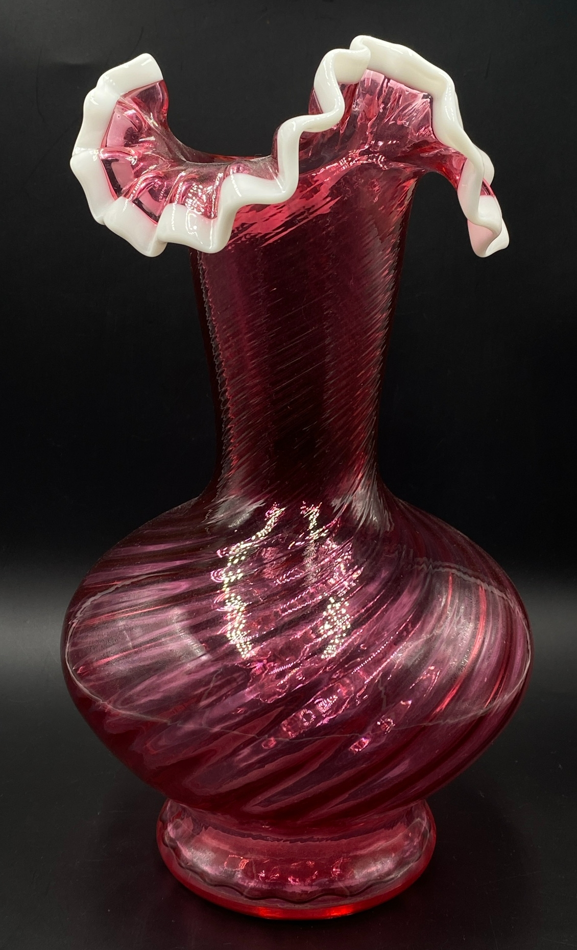 Fenton Glass Optic Swirl Ruffled Edge Vase - 11" T
