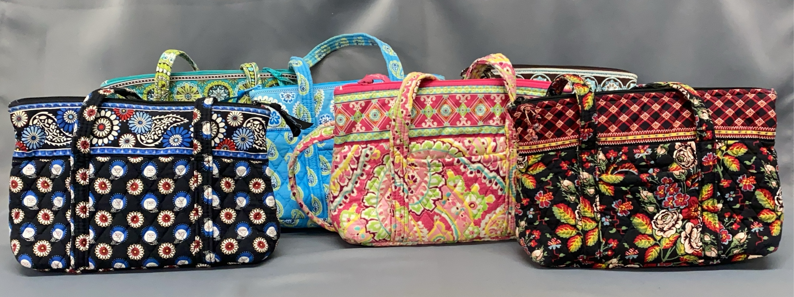 6 Vera Bradley Ladies Handbags - 12" x 17" overall of largest