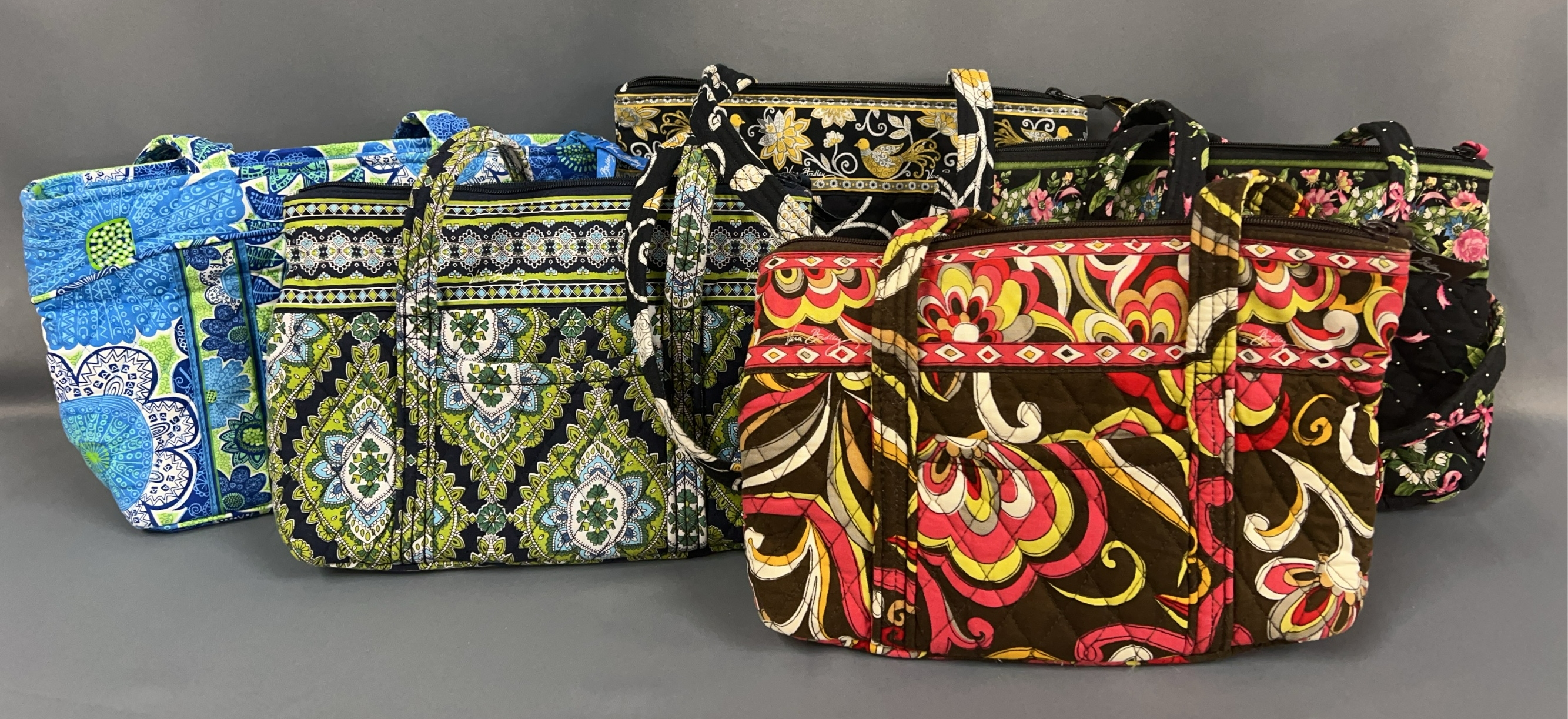 5 Vera Bradley Ladies Handbags - 13" x 15" approx of largest