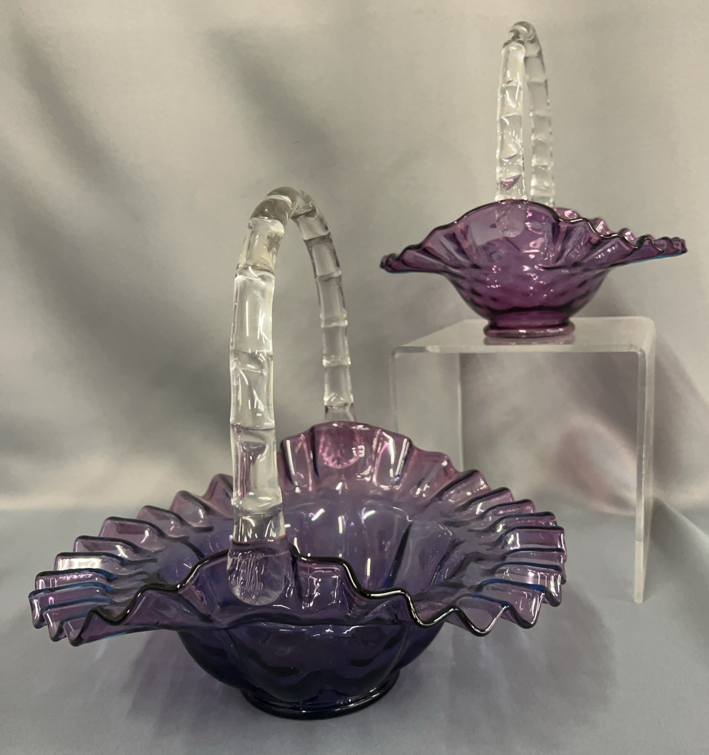 Fenton Glass Wisteria Iridescent Baskets - 2pcs - 10" x 9.5" of largest