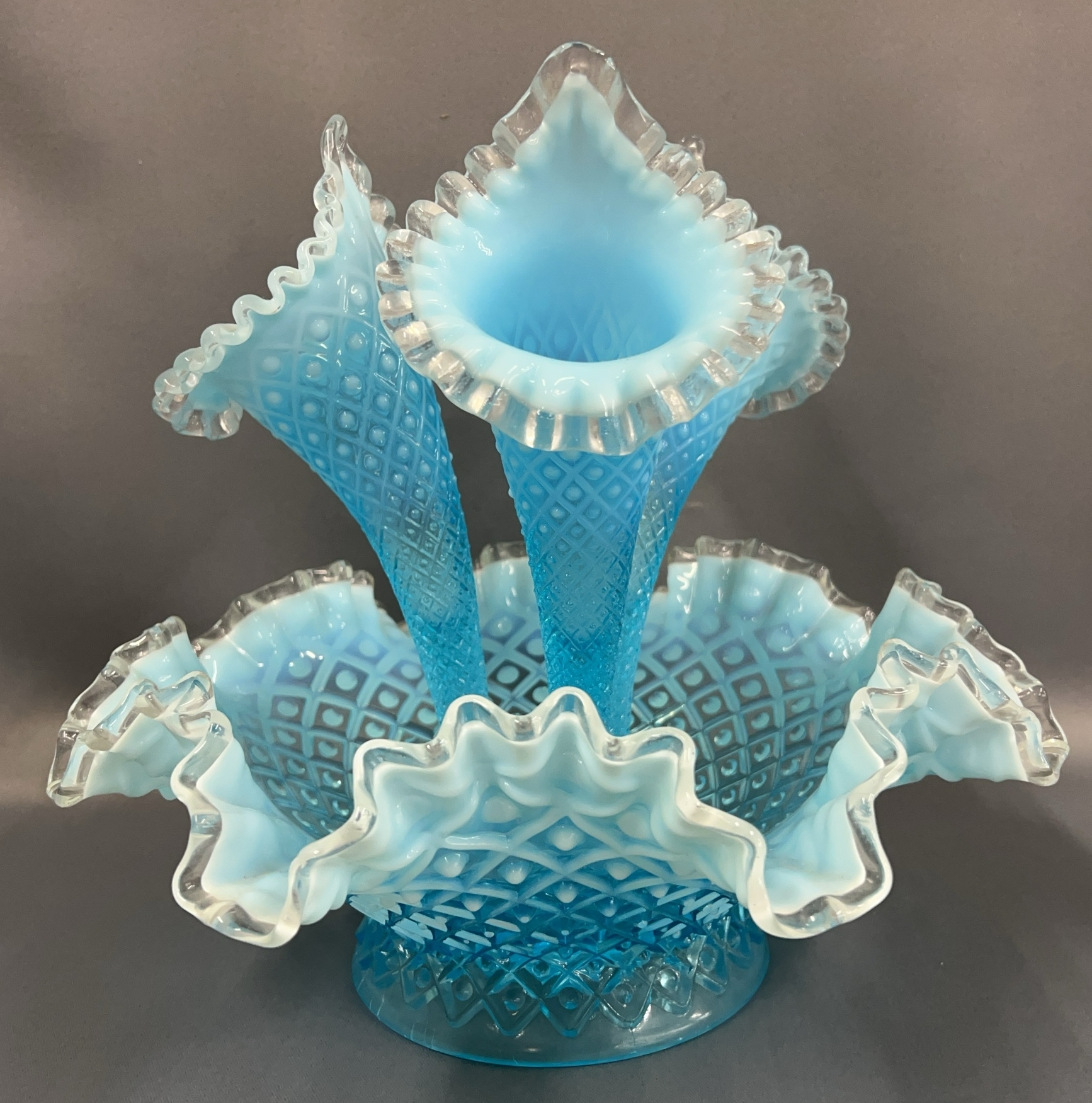 Fenton Glass Opalescent Diamond Lace Epergne - 12" x 12"