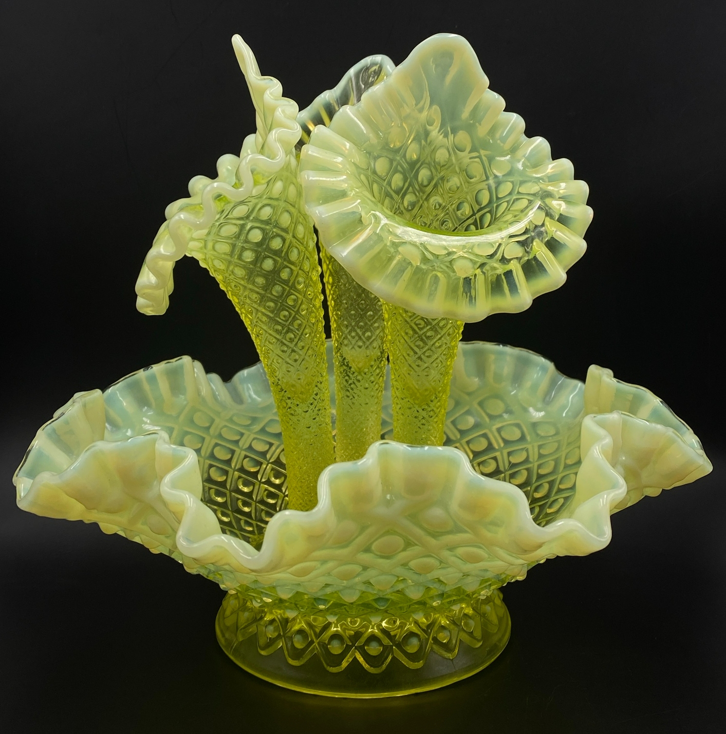 Fenton UV Reactive Diamond Lace Opalescent Epergne - 9" x 9"