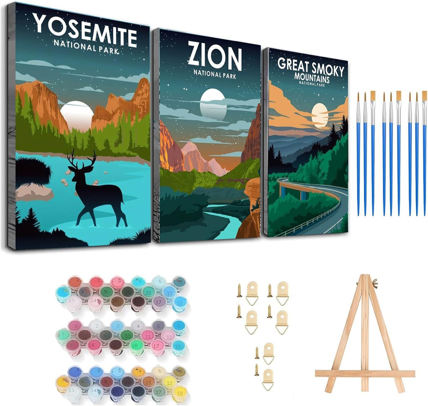 Canvas, National Park DIY Arts and Crafts for Adults Beginner with Wooden Easel, Paint Brushes, Acrylic Paint Set for Home Wall Decor, 9 * 12 Inch