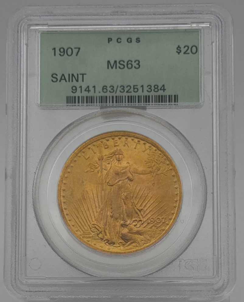 1907 PCGS MS63 Saint Gaudens $20 Gold Coin