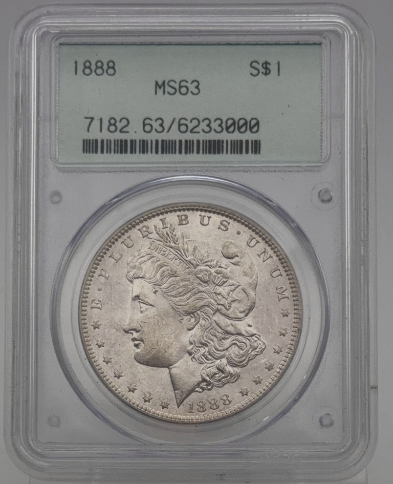 This listing is for an 1888 Morgan Silver Dollar. It has been graded MS63 by NGC.
