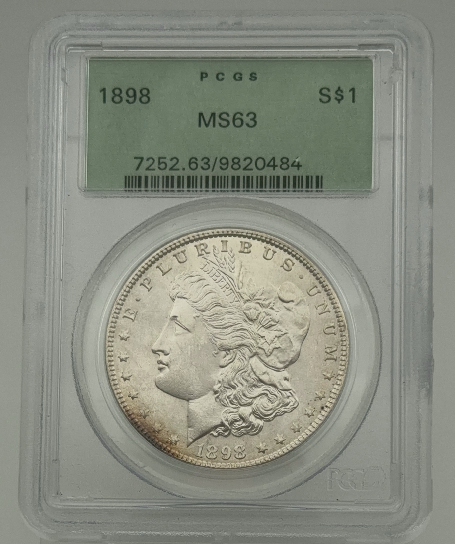 This listing features a 1898 Morgan Silver Dollar. It has been graded MS63 by PCGS.