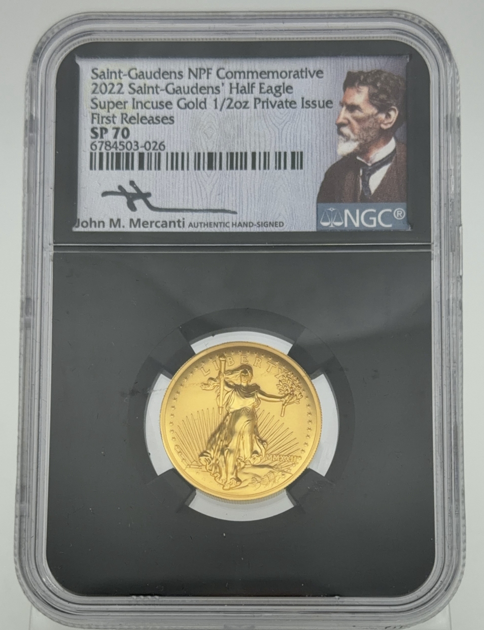 2022 Saint-Gaudens Half Eagle Super Incuse Gold 1/2oz .9999 Private Issue First Releases SP 70 NGC