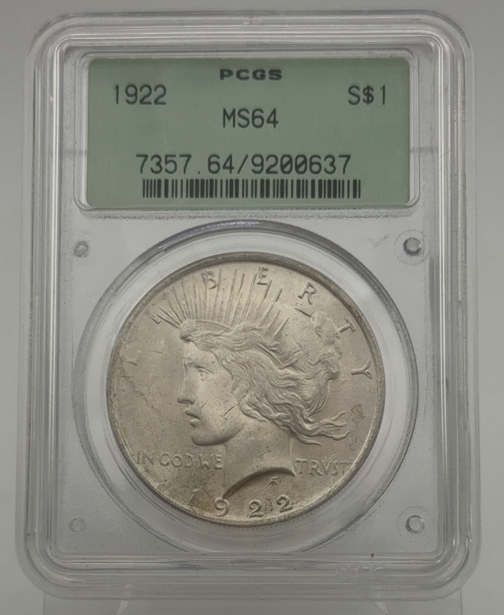 This listing is for a 1922 Peace Silver Dollar. The coin has been graded MS64 by PCGS. A great addition to any coin collection.