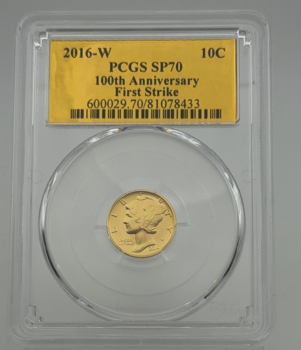2016-W 1/10 OZ .9999 Gold Mercury Dime Centennial Series 10C SP 70 First Strike