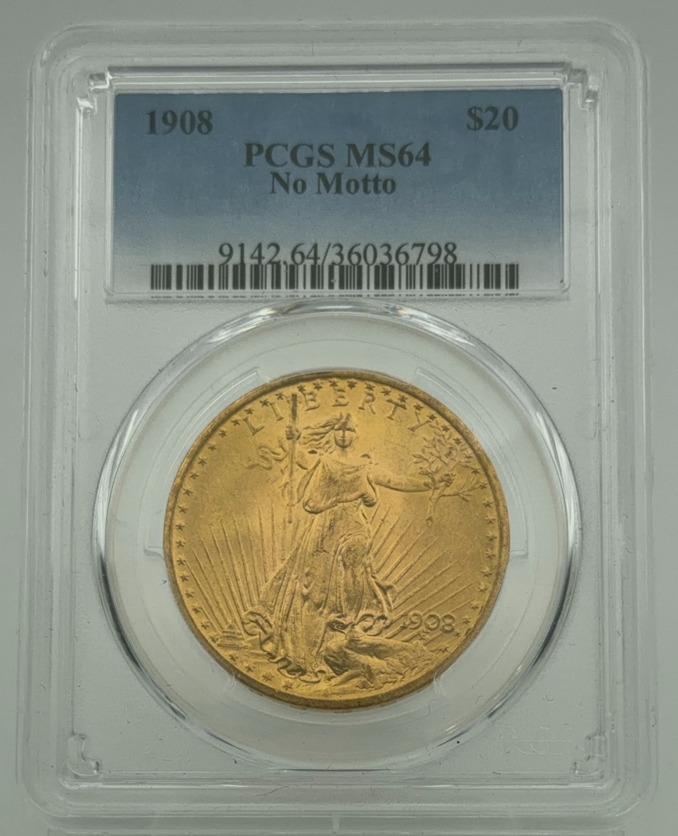 1908 $20 Gold Liberty PCGS MS64 No Motto