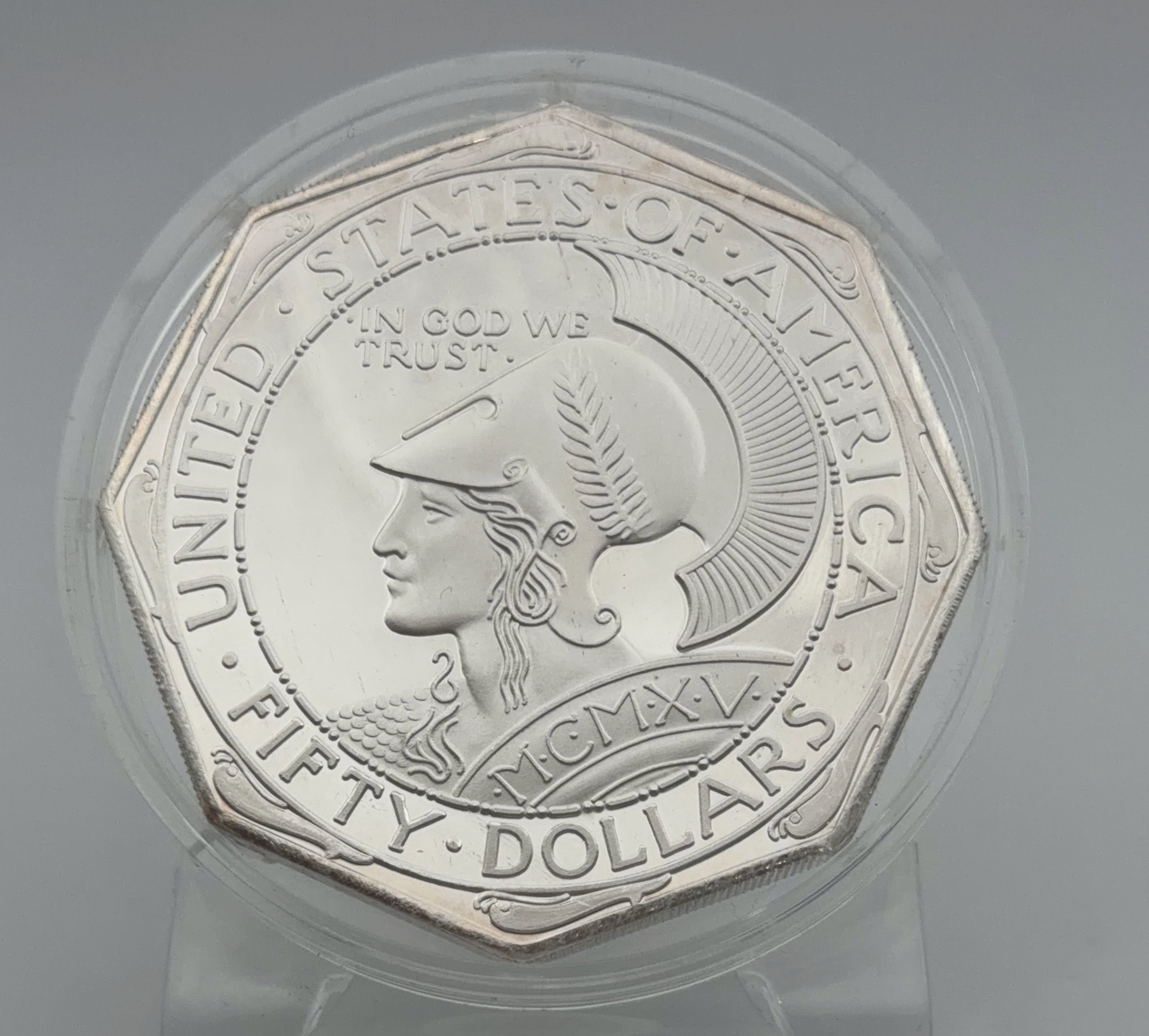 5OZ .999 Silver 1915-S Panama Pacific Exposition $50 Commemorative Octagonal Coin Replica - S/N 01078