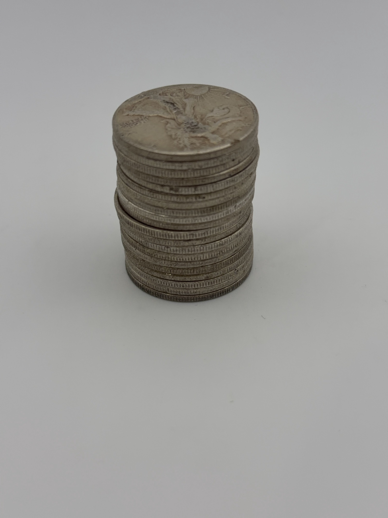 A collection of US Silver Walking Liberty Half Dollar Coins.
