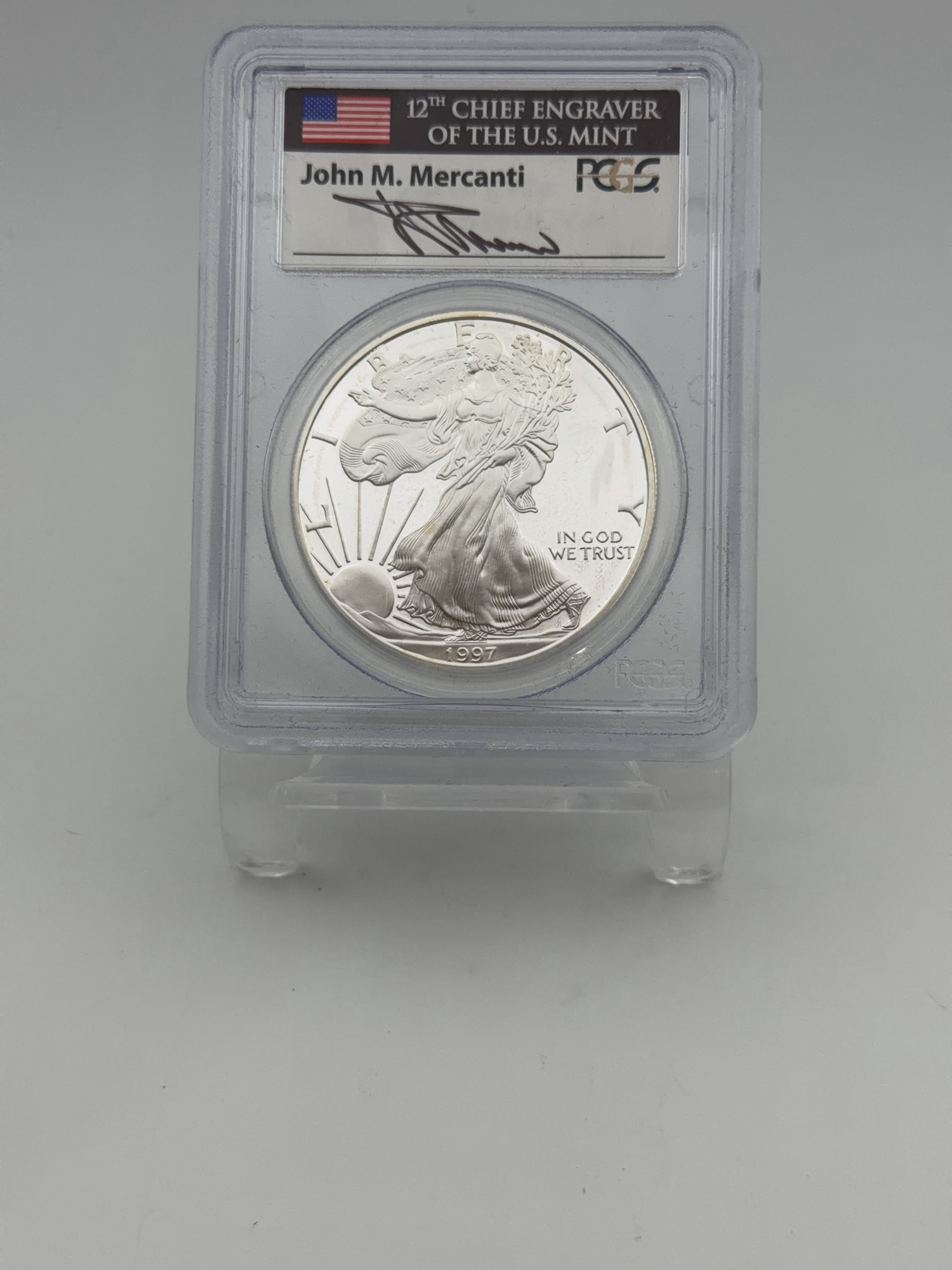 1997-P PCGS PR69DCAM Silver Eagle Coin - John M. Mercanti Signed