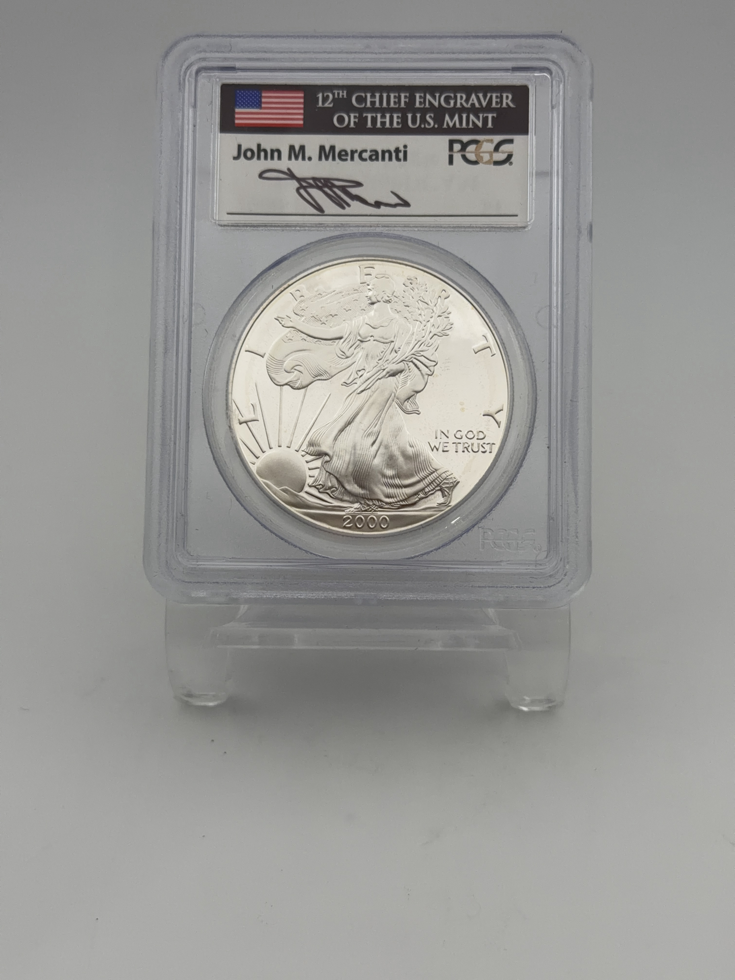 2000-P PCGS PR69DCAM Silver Eagle 12th Chief Engraver John M. Mercanti Autographed