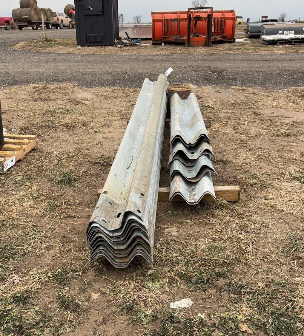 (23) 12" galvanized guard rail & bucket of galvanized bolts, row:4