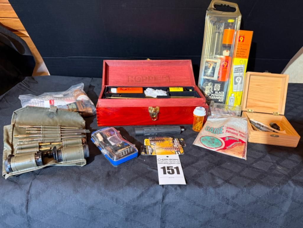 Lot contains Hoppe's cleaning kits and various supplies.