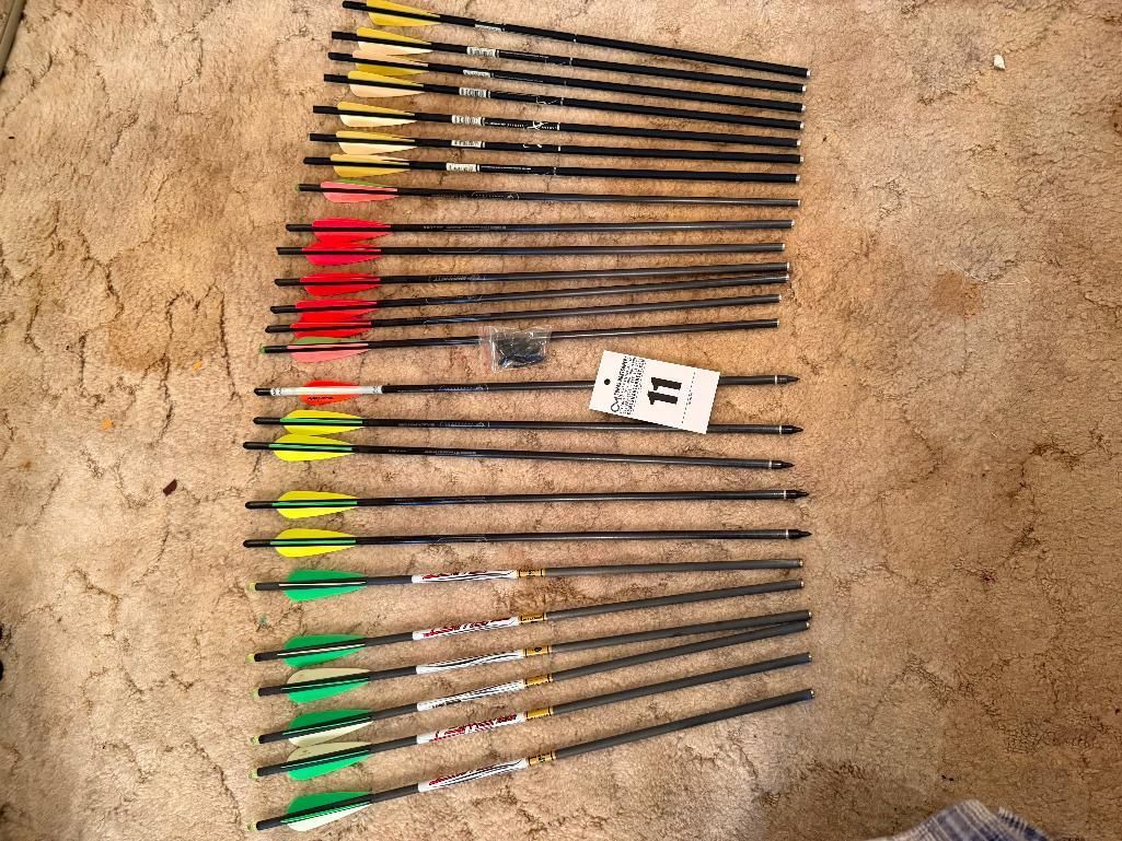 22-inch arrows including 396 Swift Goldtip, Barnetts, Carbon Express and 6 field points