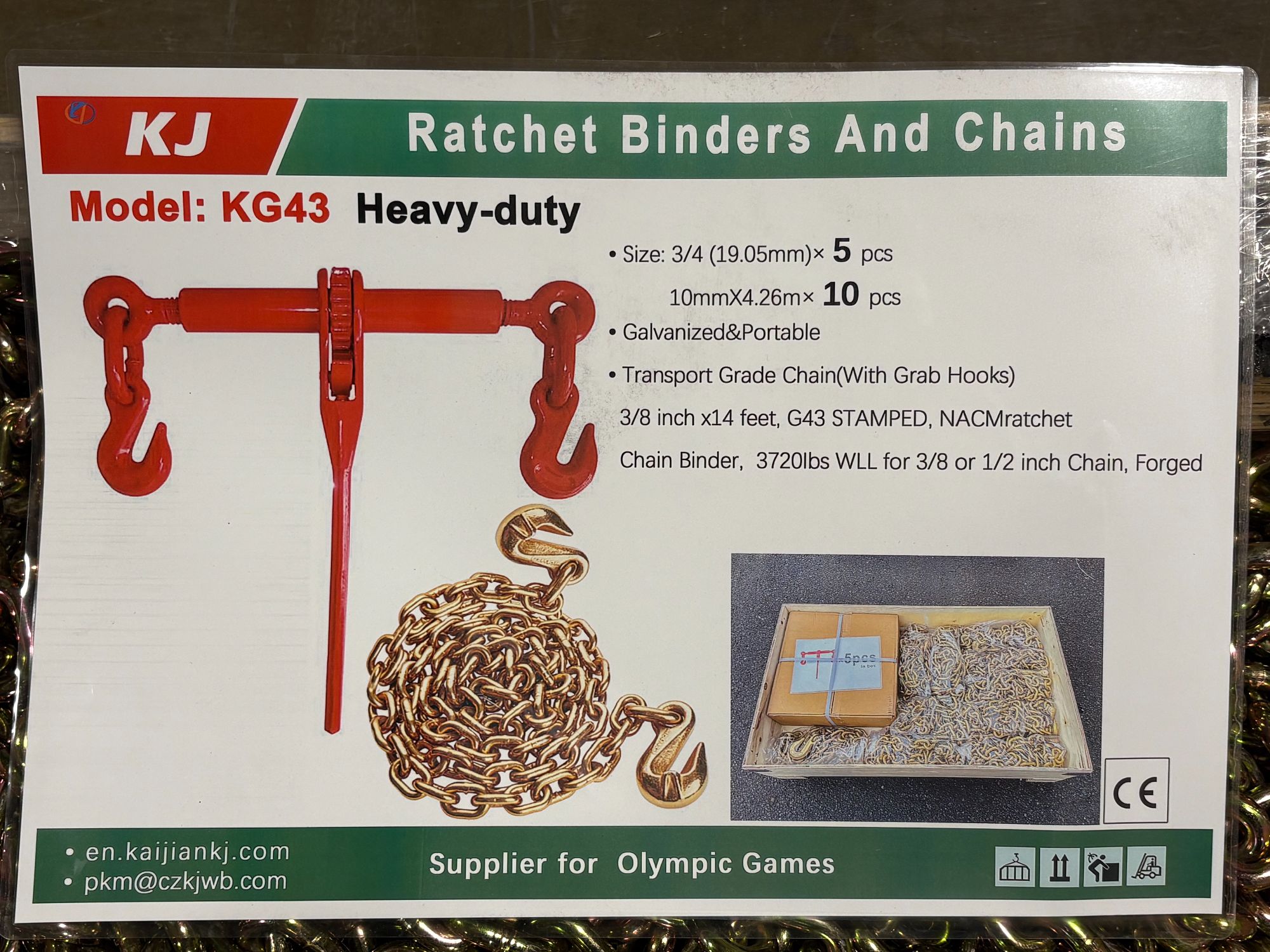 Size:3/4(19.05mm)x5pcs 10mmX4.26mx10pcs 3/8 inch x14 feet, G43 STAMPED, NACMratchet Chain Binder, 9200lbs Wllfor 3/8 or 1/2 inch Chain,Forged