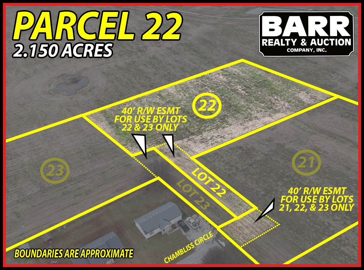 Going on the auction block, selling by online bidding only, will be 53.767 acres selling in 24 parcels. Parcel 1: 1.061 acres, Parcel 2: 0.999 acres, Parcel 3: 0.919 acres, Parcel 4: 0.944 acres, Parcel 5: 0.967 acres, Parcel 6: 3.681 acres, Parcel 7: 5.001 acres, Parcel 8: 3.747 acres with pond, Parcel 9: 1.619 acres, Parcel 10: 1.002 acres, Parcel 11: 1.022 acres, Parcel 12: 1.042 acres, Parcel 13: 2.302 acres; Parcel 14: 2.503 acres, Parcel 15: 2.107 acres, Parcel 16: 2.346 acres, Parcel 17: 2.816 acres, Parcel 18: 2.856 acres, Parcel 19: 2.565 acres, Parcel 20: 1.777 acres, Parcel 21: 1.704 acres, Parcel 22: 2.150 acres; Parcel 23: 4.406 acres, Parcel 24: 4.231 acres with pond.