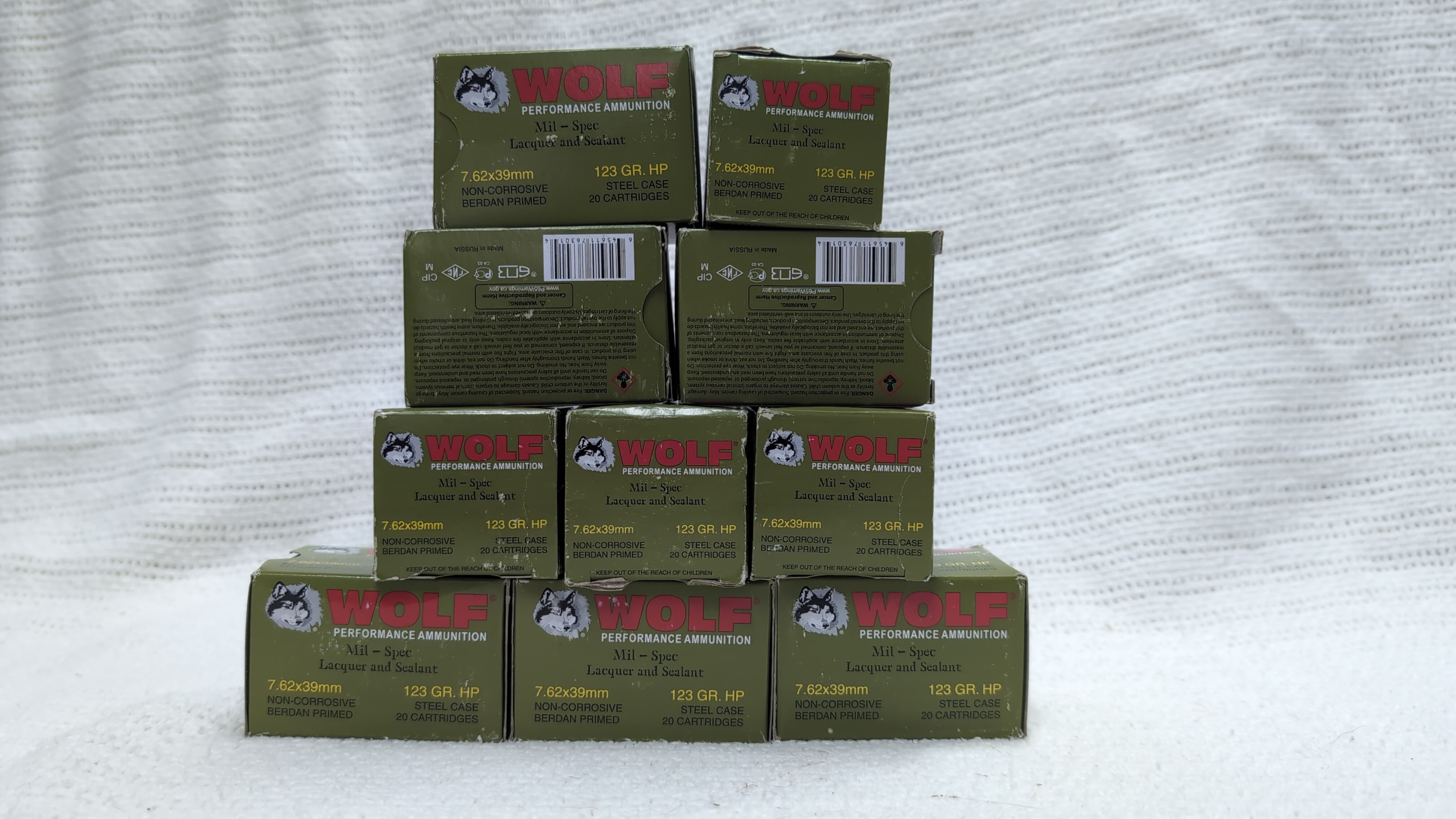 Wolf Performance Ammunition Mil-Spec 7.62x39mm 123 GR. HP 20 Cartridges(10 Boxes)