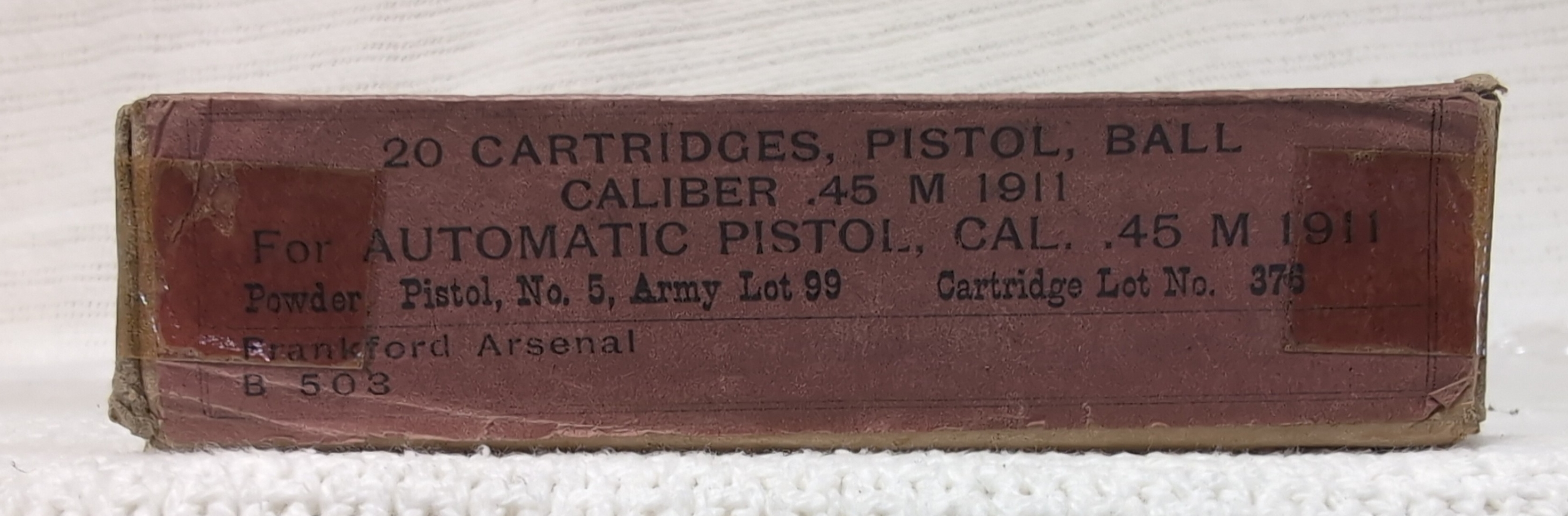 Vintage Frankford Arsenal M1911 .45 Cal 20 Ball Cartridges in original Box, made for US Army