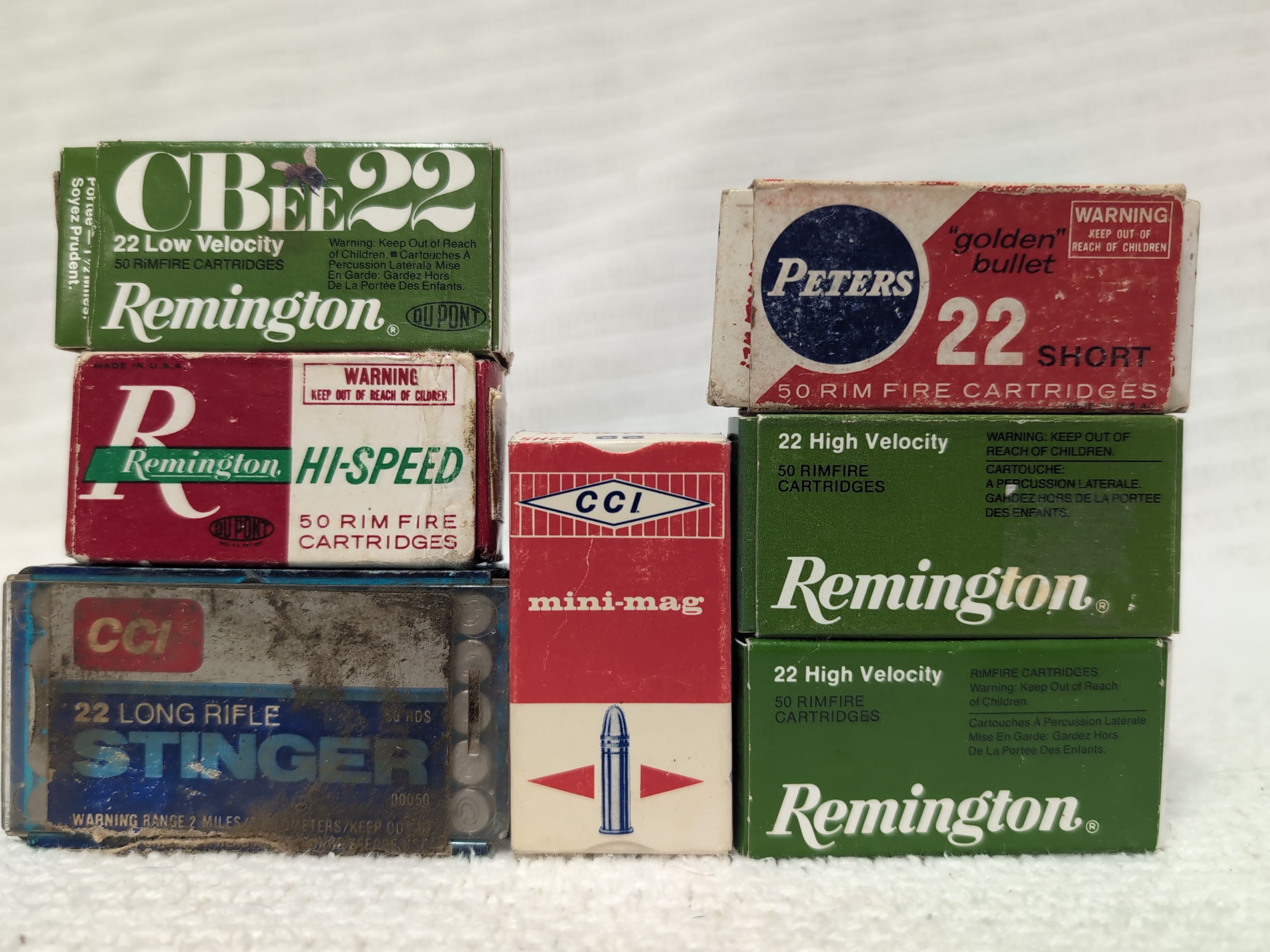 7x Mixed lot of 22 LR Rounds in 50 rds. cardboard boxes(See photos)