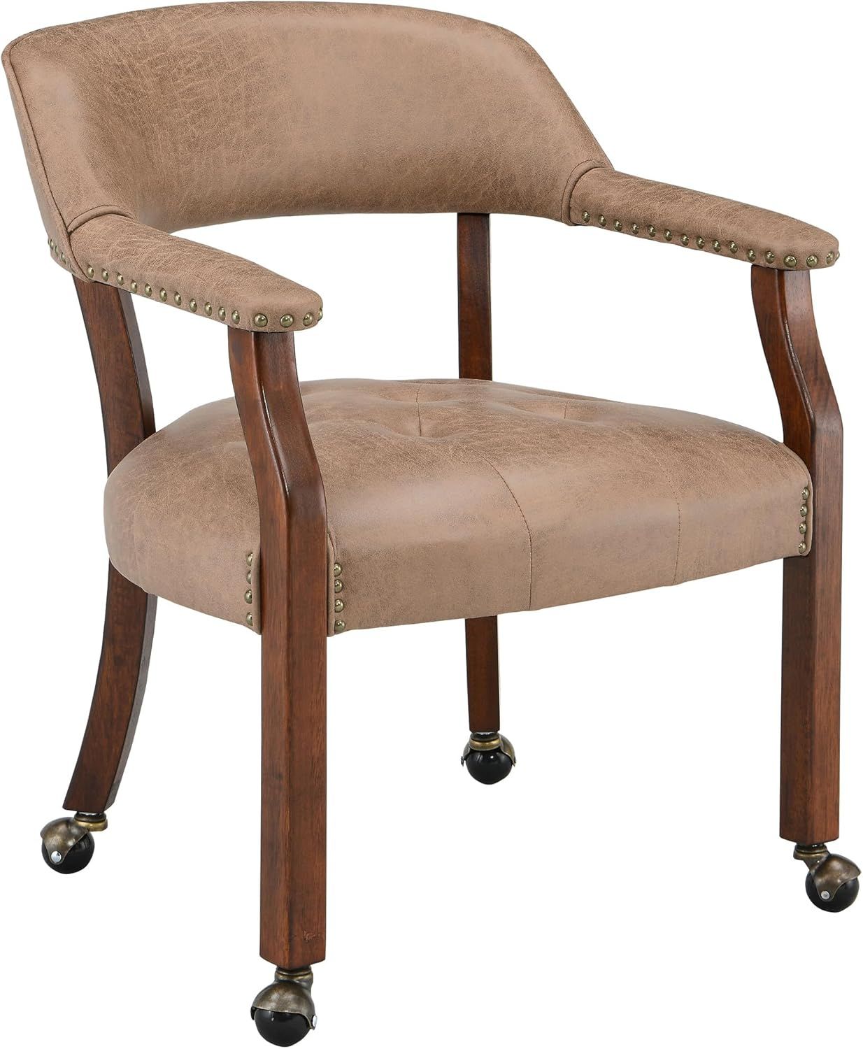 Perfect Large Dining Chairs: With 20.9"Dx20.7"Wx18"H perfect seat size and height, it feels wonderful leaning back and your feet reach the floor. With 26.2" arms height, the dining chair with casters fits well under American standard 28"-30" H kitchen dining tables. Overall measure: 26 Dx25.2"Wx31.5 H. The soft-touch suede-like fabric surface is super resistant to serve for a long time with breathable; sweat-absorbent and dustproof; dirt-resistant features. 360 Swivel Rolling Chairs: Chic in design and durable in quality with surrounded hobnail, metal shell casters, solid rubber wood frame, curved solid wood legs, button-tufted upholstered seat, and excellent back support. The dining chair with caster moves easily with you sitting in it on carpet or linoleum recommend). Casters roll just enough but not too much to slip when you are getting up, ensuring your safety maximally. Max. load: 280 LBS. Comfortable for All Purposes: The chic dining chair with casters not only fits in well with any decor dining room round/rectangular kitchen table, home poker game table, office computer desk, and vanity table but also ensures a comfortable sitting experience for those long-time poker nights, football nights or family chat with the thicker & wider button-tufted upholstered seat and the ergonomic backrest and armrest. Easy To Set Up: It will be a breeze to assemble the pre-assembled dining chair with casters if you can follow full assembly instructions and the assemble video step by step. Please ensure that 2 front legs are on the correct sides before installation. Don't tighten any of the bolts much at all (80% is enough) until join all the parts. Relatively easy to assemble with a household electric drill and 2 people if available. Worry-Free Purchase: As a factory direct store, we optimize packaging and strengthen quality inspection of the dining chair with casters, to reduce breakage and missing hardware parts. Also, the screws are optimized to prevent them from loosening after long-time use, which greatly enhances the safety during use.
