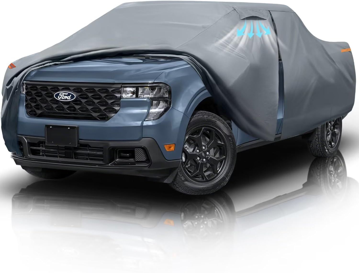Custom Fit For Ford Maverick 2021-2025 SuperCrew Cab Short Bed(4.5') Auniquely designed, exclusive pickup customization tailored for a perfect fit, offering exceptional protection for your vehicle. The size is ideal for various scenarios, making it the perfect choice for you. As a special gift, we include a storage bag and a towel. Heavy-Duty Materials Dozentro car covers are constructed from heavy-duty materials. The outer layer of PE provides 100% waterproofing, while an aluminum membrane in between extends the cover's lifespan. This makes it an excellent choice for long-term use. Enhanced Design Features 1 Cab Zipper: Includes a driver's side zipper for easy access to the vehicle's cabin. 2 Double-layer Cotton Interior: Effectively protects your car's paintwork. 3 Reinforced Wind Straps: Three straps located at the front, middle, and rear of the vehicle can withstand winds up to 9 on the Beaufort scale. 4 Ventilation Design: Enhances airflow, prevents moisture accumulation, and safeguards the vehicle's interior. All-Weather Protection The car cover offers excellent heat insulation during summer and is waterproofed at the seams, providing protection against rain, UV rays, wind, and dust throughout the year.