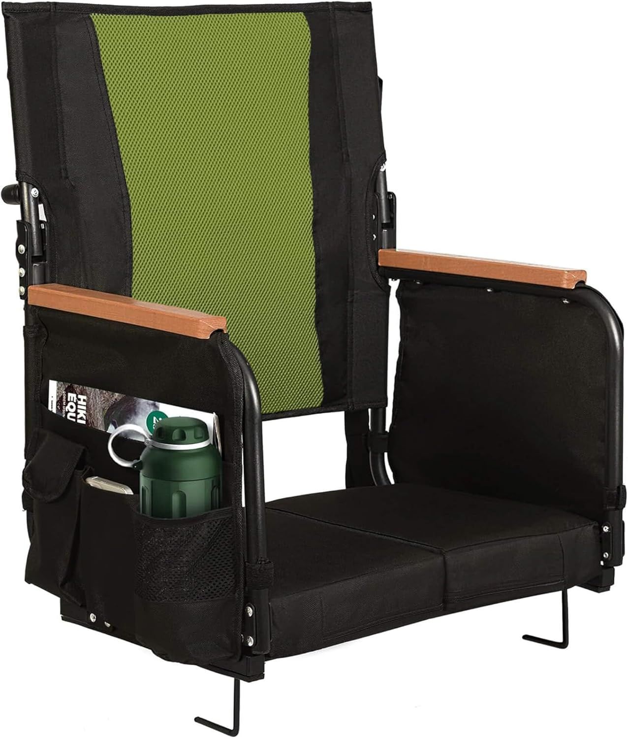 Ultimate Comfort Design Enhance your game day experience with stadium seats for bleachers featuring exceptional back support. The high backrest uses a breathable fabric for optimal ventilation and heat dissipation. Thickened Cushion Design Our padded stadium seats are designed with a 2.8" thick cushion and elegant wood armrests. With enhanced softness and support, they're perfect for sports parents and grandparents seeking superior comfort during events. Compact Folding Design The wide stadium seats with back support fold down to a compact size with convenient shoulder straps for effortless carrying. The portable design ensures easy storage and transport convenience. Wide Seat Comfort Featuring a 21" extra-wide seat, this folding stadium seat is perfect for big and tall adults. It provides superior comfort and ample space, accommodating all body types so everyone can enjoy games without feeling cramped. Convenient Storage Solutions Beharity football stadium seat includes multifunctional storage pockets and a built-in cup holder. Keep your drinks, snacks, and essentials within arm's reach, making your game day experience more organized.