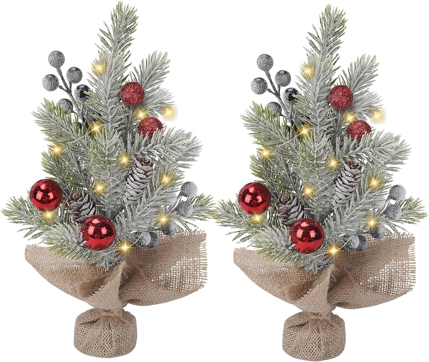 2 Pcs Table Top Christmas Trees with Lights 11.8"