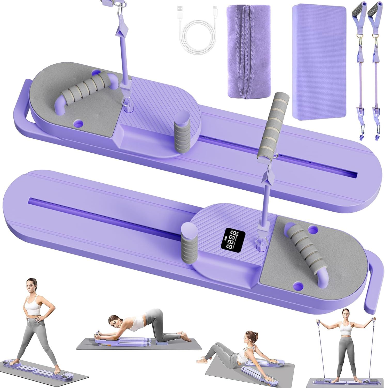 EXPERIENCE ALL-IN-ONE FITNESS This Pilates Reformer Set enables a complete full-body workout. It integrates an abs board, Pilates reformer, leg machine, stepper, arm trainer, resistance bands, and glute trainer into a single compact system. Also equipped with a Microfibre Towel, you don t have to worry about sweating profusely during exercise. Train your abs, core, pelvic floor, legs, and arms with this digital-display equipped suite COMPLETE PILATES BOARD KIT Designed with comfort and practicality in mind, this Pilates machine includes 20mm TPE knee cushions, 8mm EVA elbow pads, and sweat-absorbing foam handles. Its low-noise rails and 20 non-slip base mats ensure quiet operation. When disassembled, it can be stored vertically against a wall or tucked in a corner, saving up to 40% more space than conventional reformers and helping maintain a clean and organized workout area ADJUSTABLE SPLIT- DESIGN REFORMER Featuring two independently adjustable platforms crafted from reinforced PP material, this reformer supports up to 300lbs and allows personalized width settings for targeted muscle engagement. Unlike fixed-position abs boards or unstable ab rollers, it offers superior stability and control throughout your exercises SMART LCD TRACKER An integrated digital display records your training duration, counts repetitions, and calculates calories burned in real time, offering insights into your performance. Enjoy data-driven Pilates sessions at home no gym membership needed VERSATILE AND MODULAR Engineered for multifunctional strength and toning, this innovative split-style Pilates board focuses on the abs, back, shoulders, and legs. It supports muscle strengthening, conditioning, and sculpting across various groups. Replace crowded gyms and repetitive routines with this effective at-home solution that helps you reach your fitness milestones.