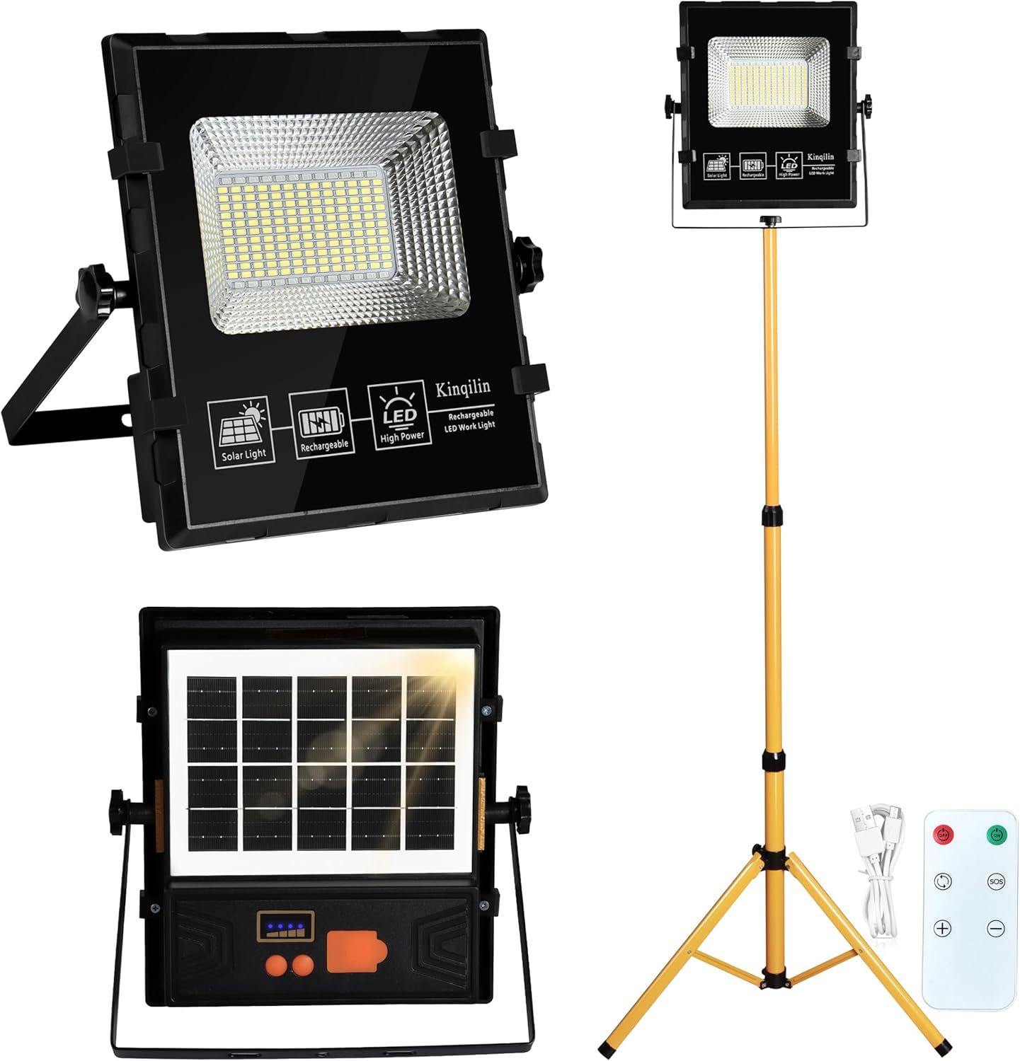 Simply place in sunlight to charge:This solar light works best in direct sun (25-30H full charge),Solar Cells achieve 72% conversion efficiency. The 30,000mAh battery keeps construction zones lit for 120+ hours and charges phones when power fails. Remote Control: Control Lights from Your Truck!Intelligent remote control works from 65ft away, even through concrete walls. Adjust brightness, switch modes, or sync 10 lights at once all from the comfort of your bulldozer cab. Energy-Efficient: Blast 3280ft with crisp 6500K daylight 30% brighter yet 20% more energy-efficient than standard work lights. Rechargeable powerhouse for construction lights, the light range is larger lamp bright, designed to light mega-sites. High-Capacity & Smart LED Work Light :30,000mAh battery delivers 14hr (Strong)/120hr (Low) built to last through all-night jobs. Auto-Energy Saver kicks in after 1 minute to extend runtime. Ideal for construction sites or outdoor jobs. Fast Charging&Intelligent Protection:Type-c cable (Include)charging can be fully charged in only 12hours,power display (25% 50% 75% 100%) to observe the power.and it can be used as an accumulator for cell phones and other mobile devices emergency charging. The tripod work light built in Intelligent protection board can make it safe charging,to improve the safety of high-power work light. Industrial-Grade Durability: Engineered for construction sites, the Kinqilin LED work light features IP65 waterproof/dustproof protection (withstands rain and debris) and impact-resistant ABS housing. Built to withstand harsh job site conditions, from accidental drops to extreme weather. Warm Tips: Kinqilin committed to providing every user with excellent shopping experience, we provide 7 * 24 hours service, any questions you can get in touch with us at any time and quickly solve your problem, please rest assured that the purchase!