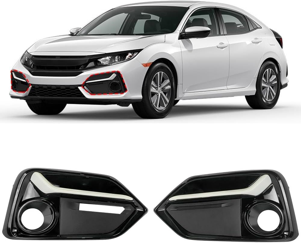 The Fog Light Cover is compatible with Honda Civic 2017-2021. Package Include: 1 Pair Front Fog Light Cover. The Fog Light Cover Installation position:Front Driver and Passenger Side. The Fog Light Cover Material: Made of Plastic. The Fog Light Cover Fitment Type: Direct Replacement.